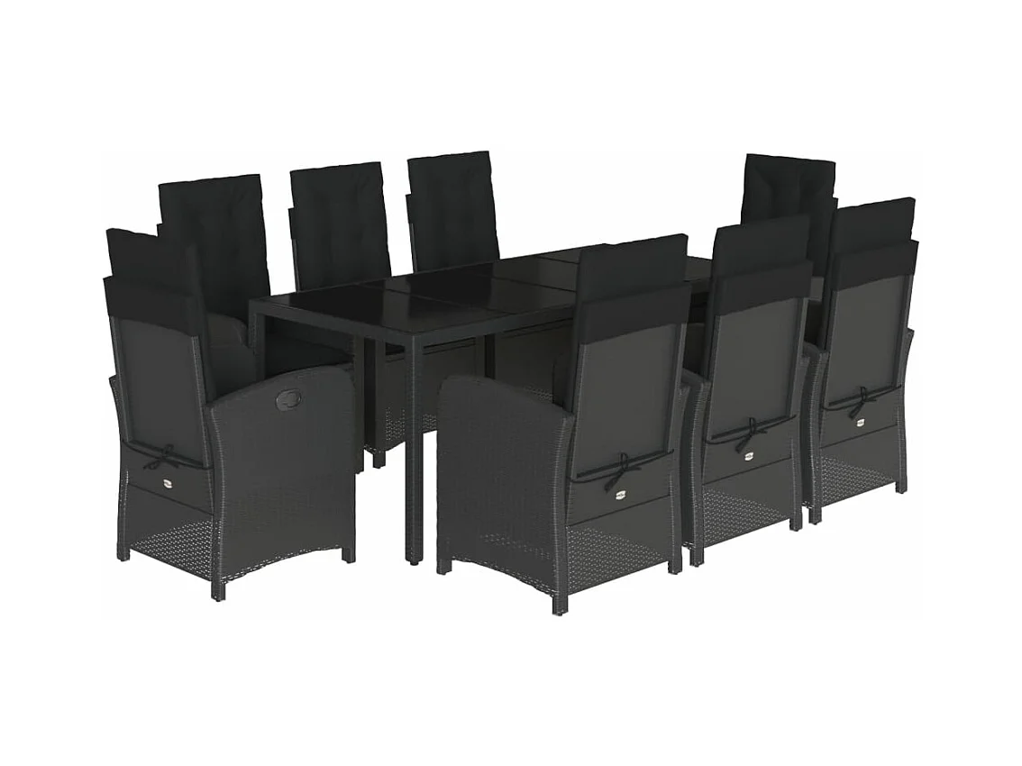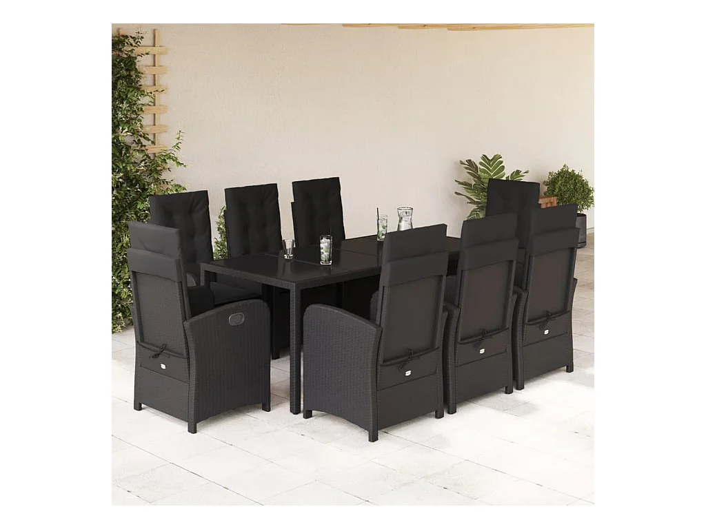 Ensemble à manger de jardin 9pcs coussins noir résine tressée