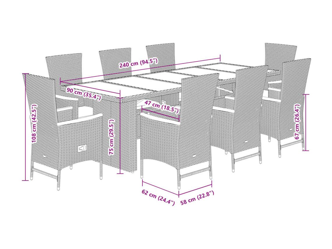 Ensemble à manger de jardin 9pcs coussins noir résine tressée