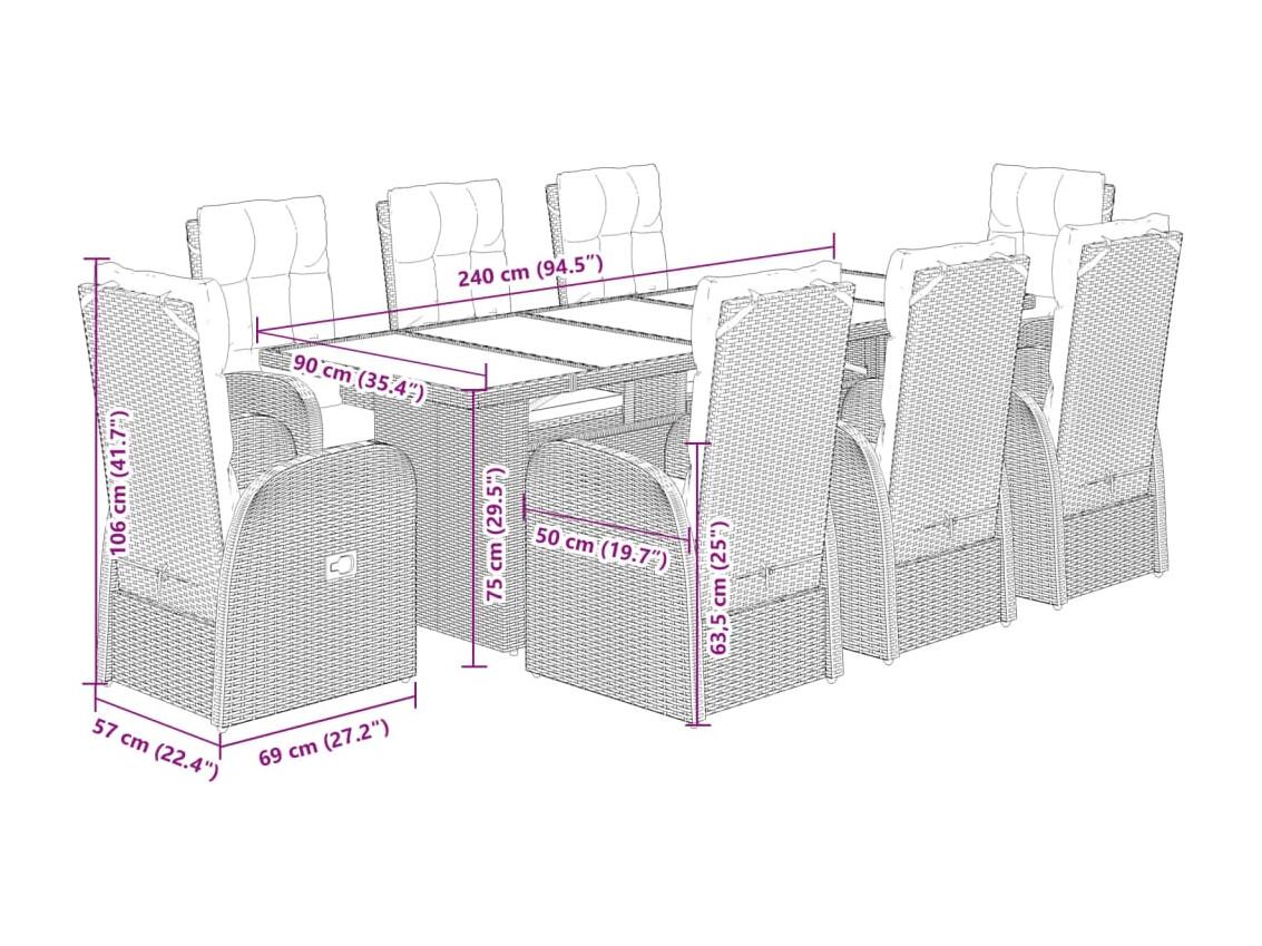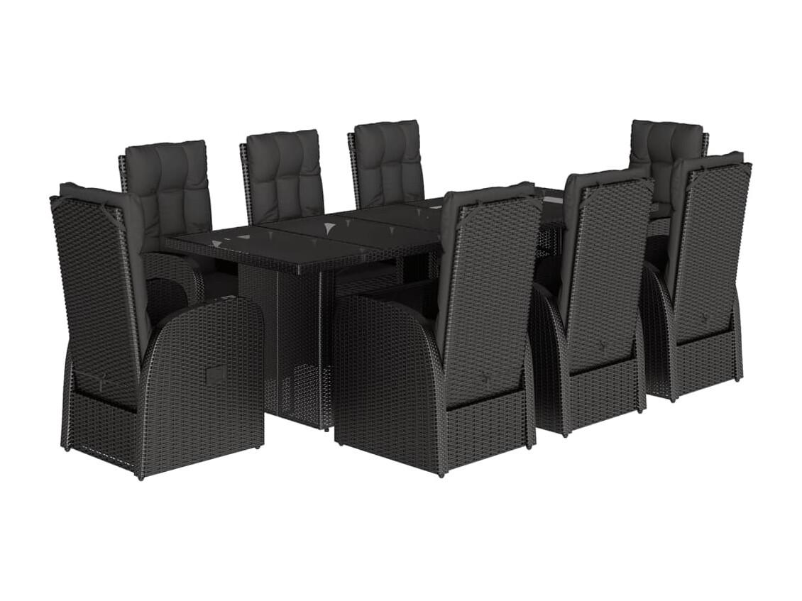 Ensemble à manger de jardin 9pcs coussins noir résine tressée