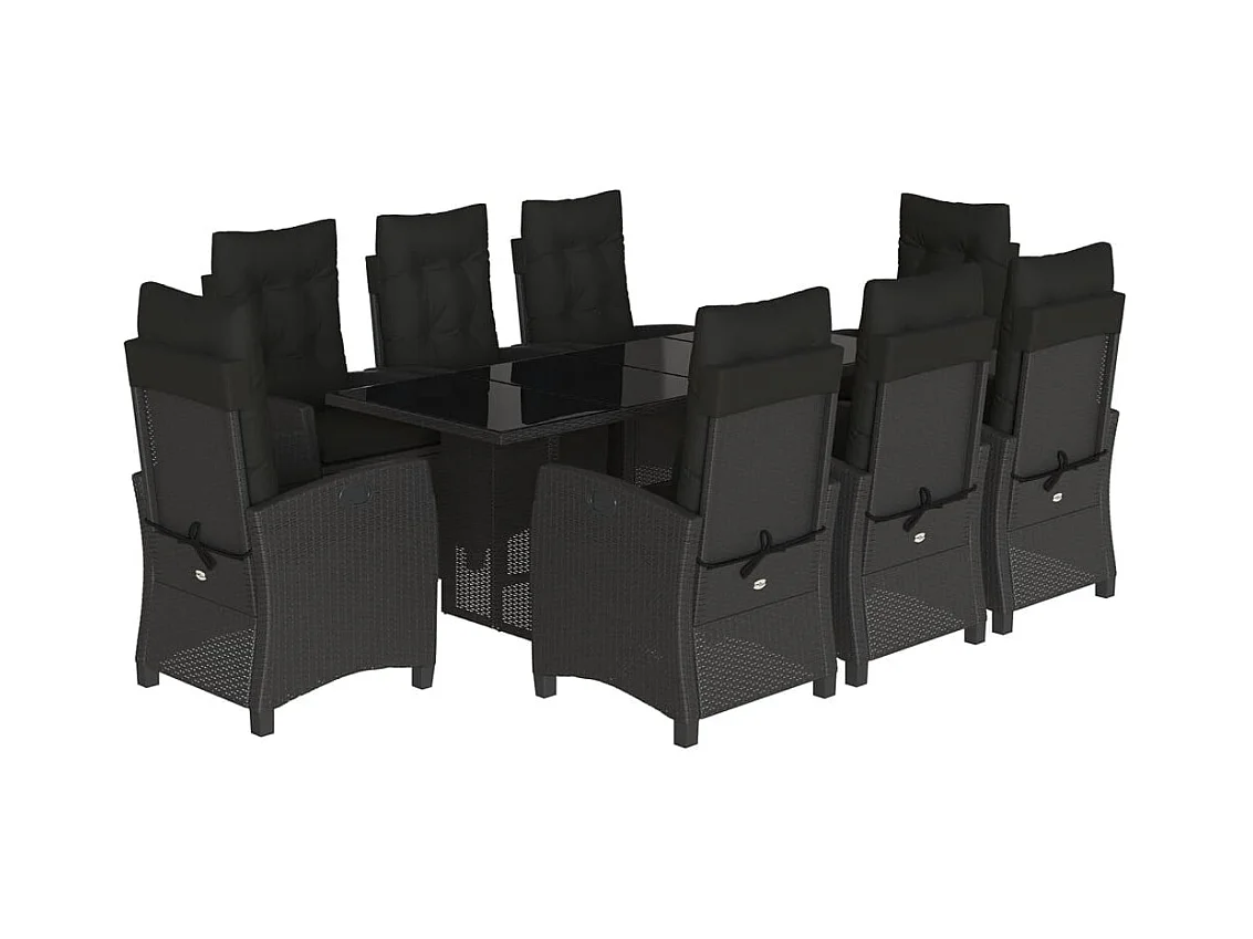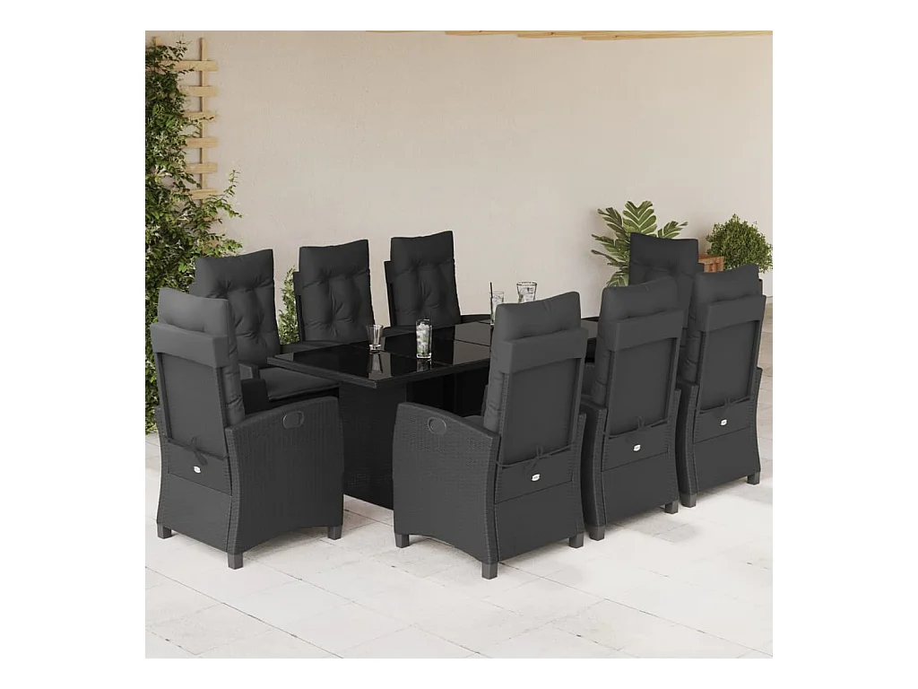 Ensemble à manger de jardin 9pcs coussins noir résine tressée