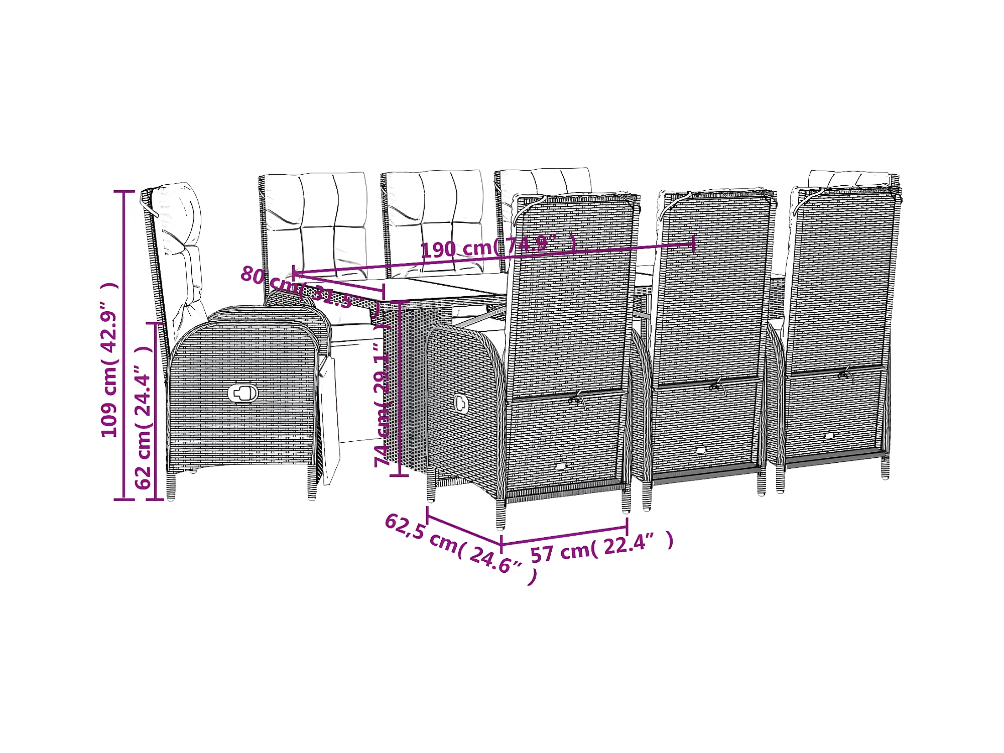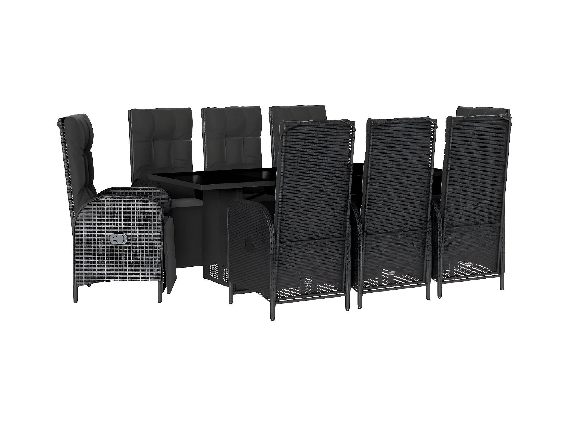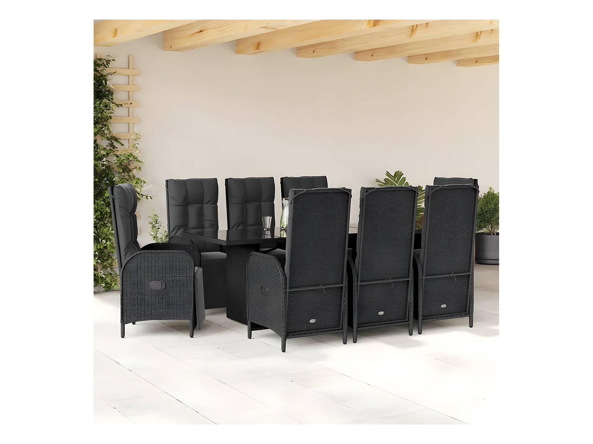 Ensemble à manger de jardin 9pcs coussins noir résine tressée