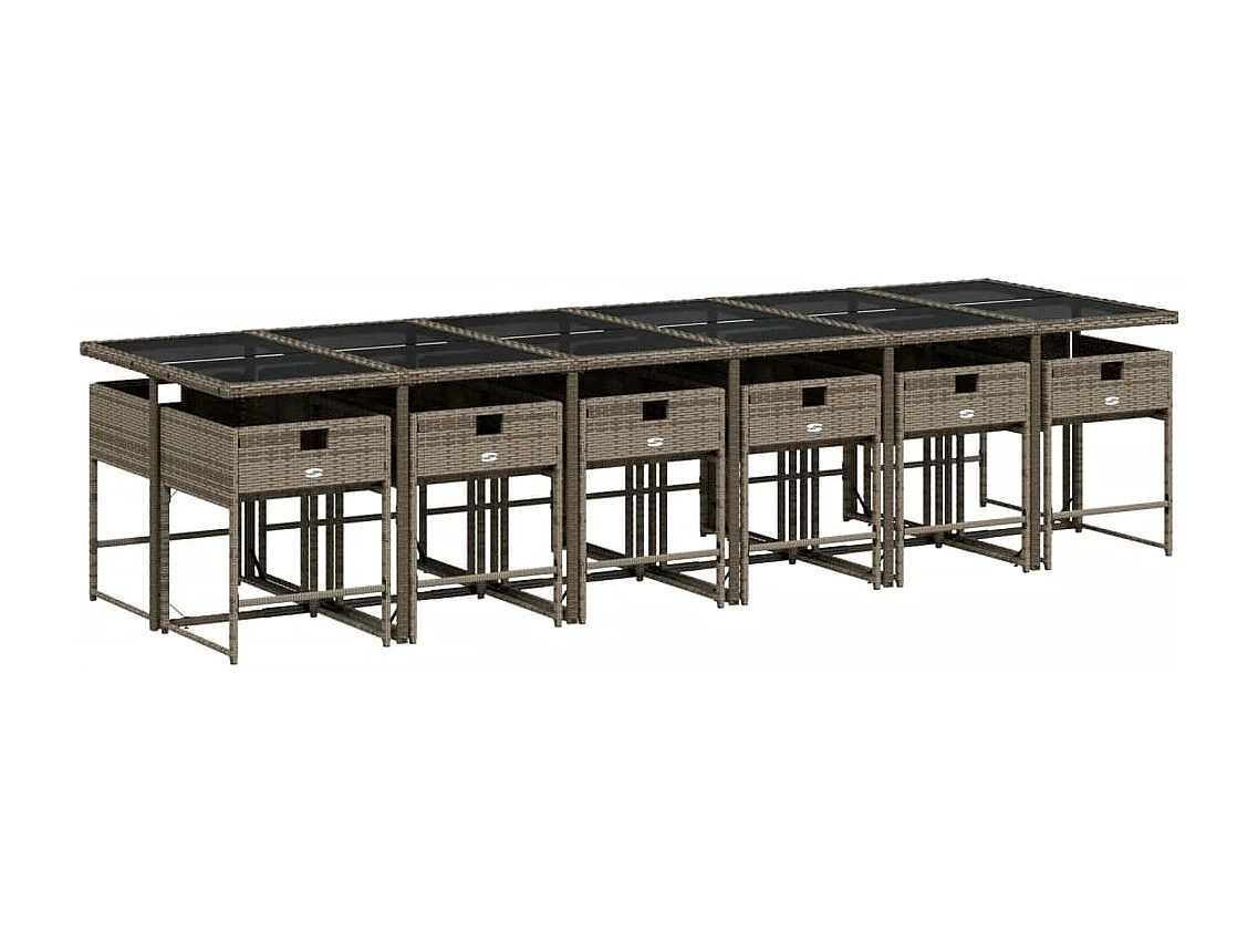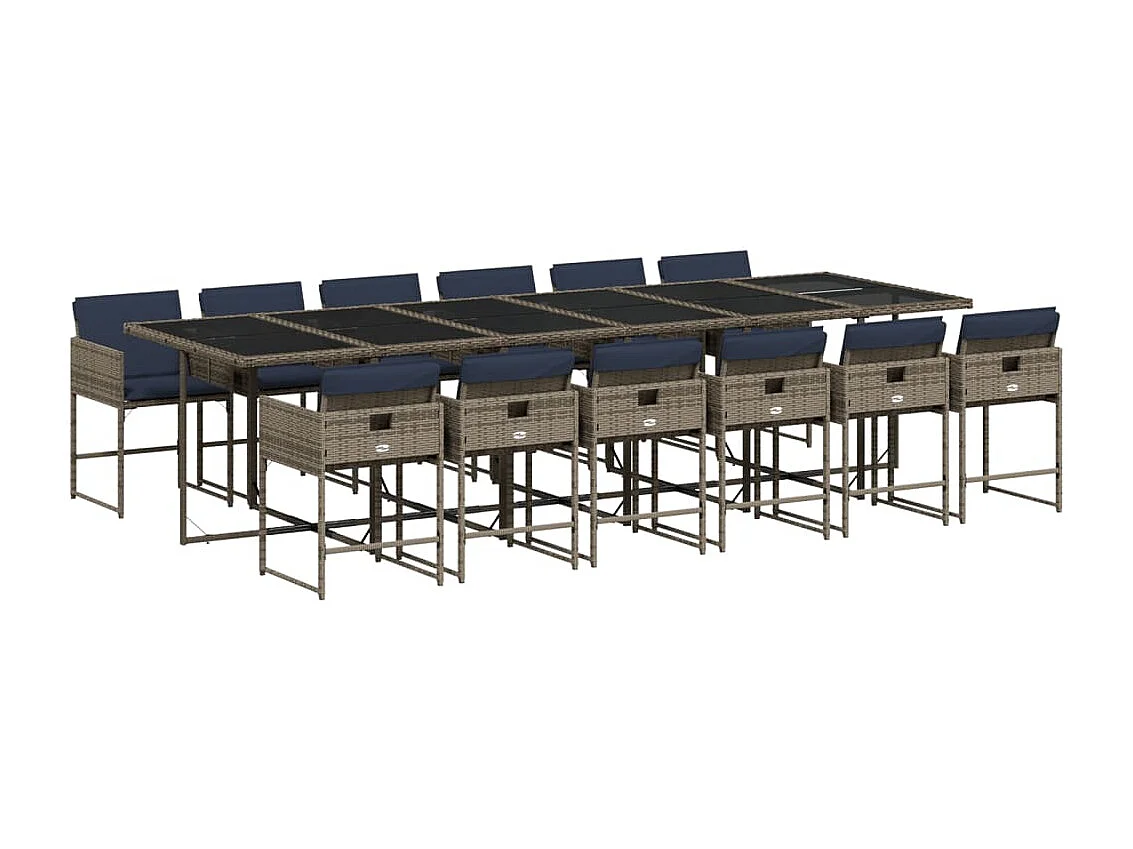 Ensemble à manger de jardin avec coussins 13 pièces résine tressée