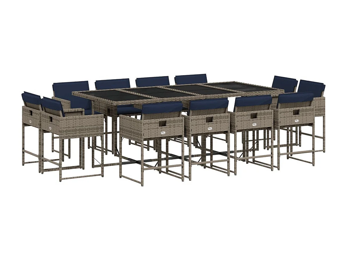 Ensemble à manger de jardin avec coussins 13 pièces résine tressée