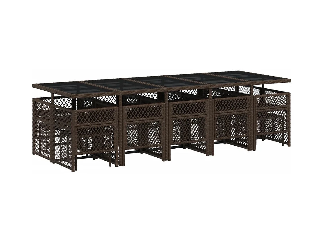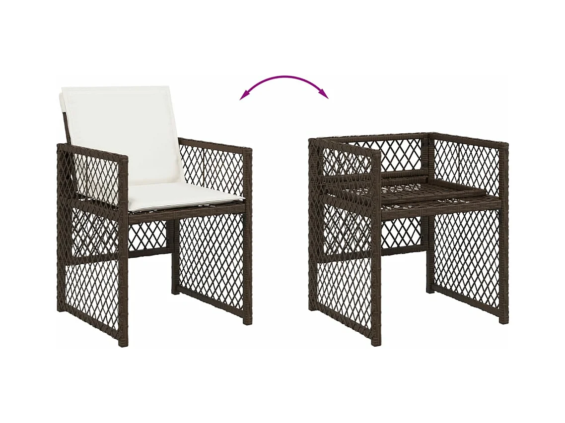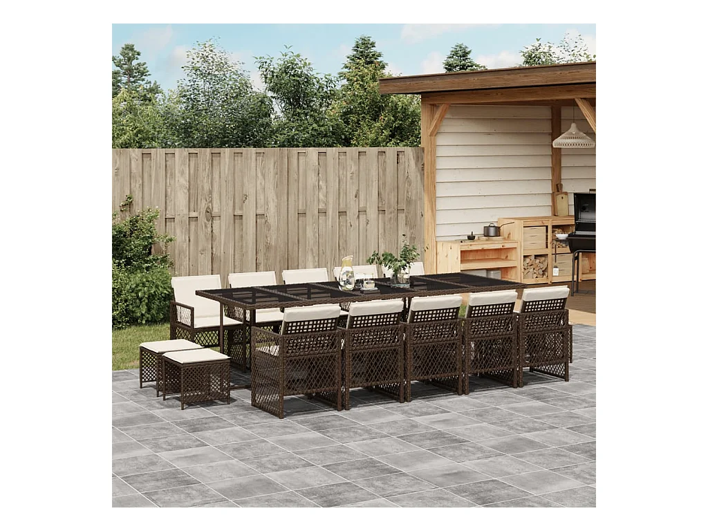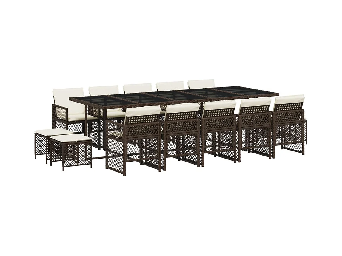 Ensemble à manger de jardin avec coussins 15 pcs marron rotin