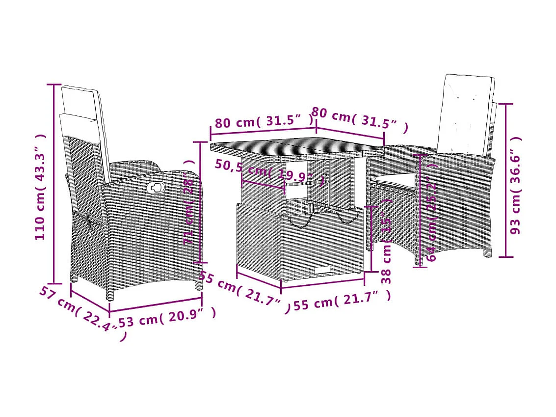 Ensemble à manger de jardin avec coussins 3 pcs Noir