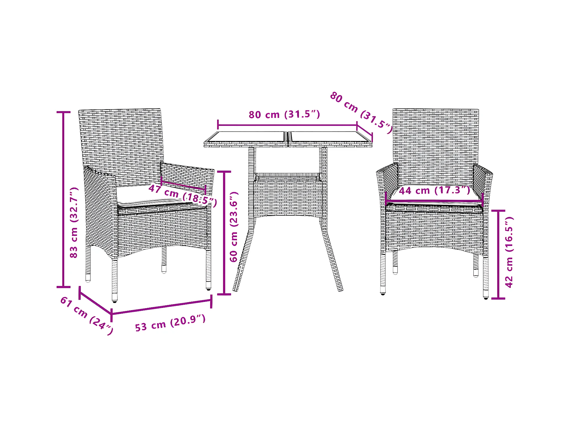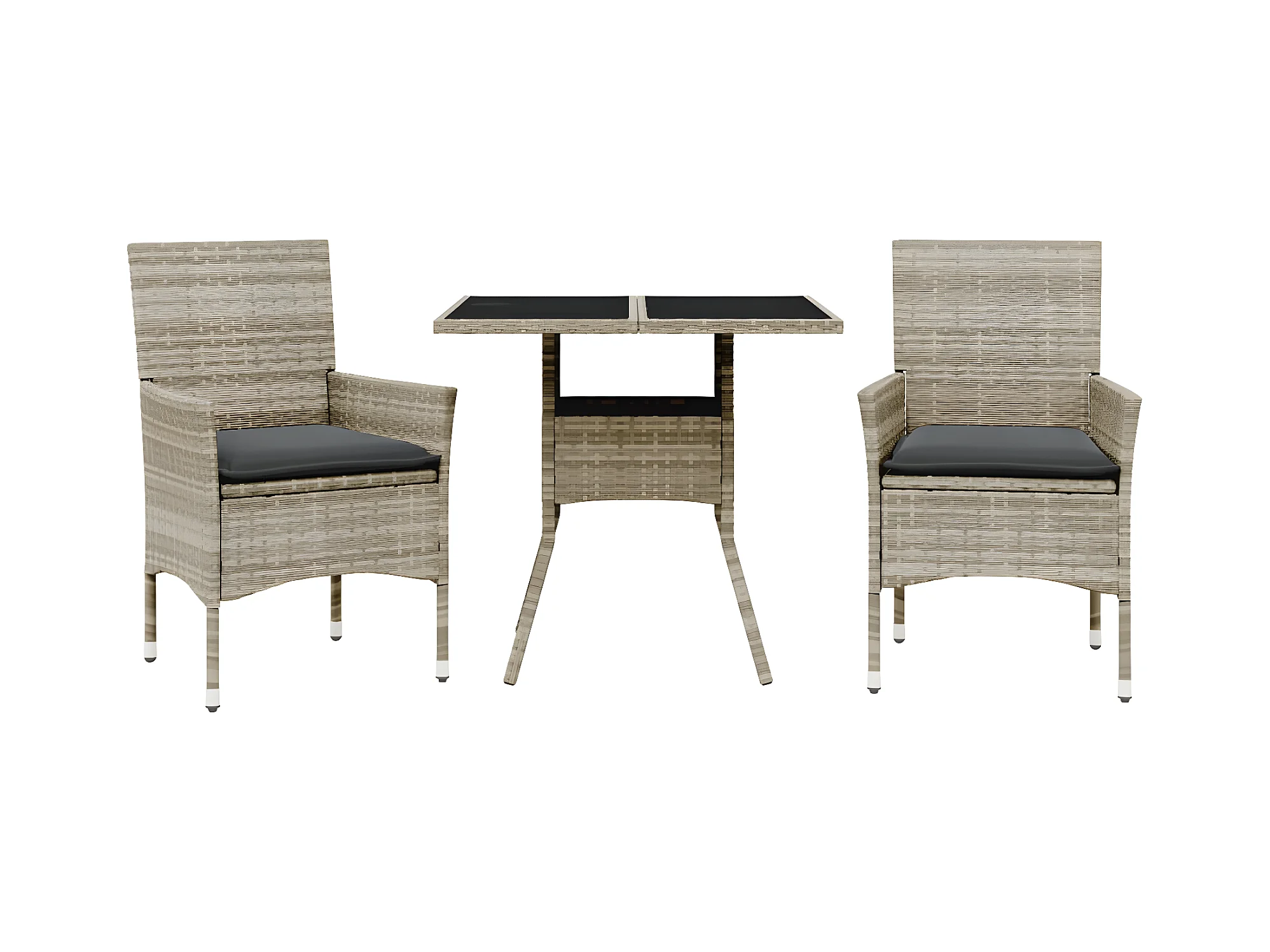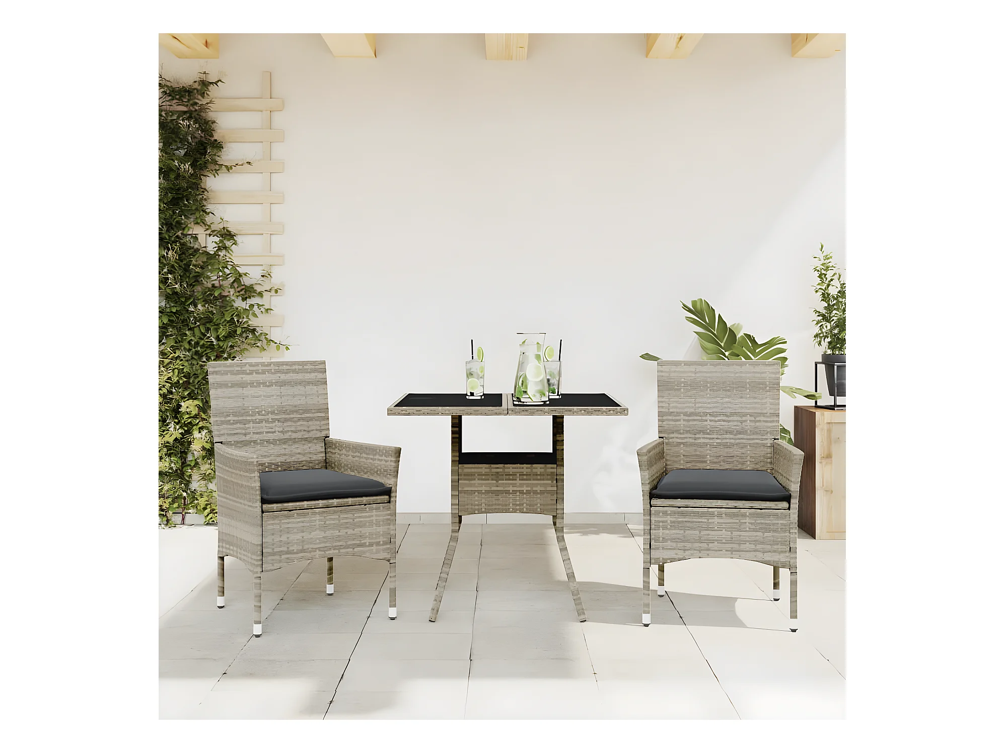 Ensemble à manger de jardin avec coussins 3 pcs rotin et verre