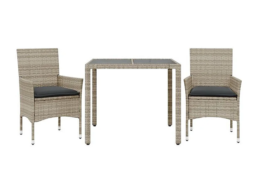 Ensemble à manger de jardin avec coussins 3 pcs rotin et verre