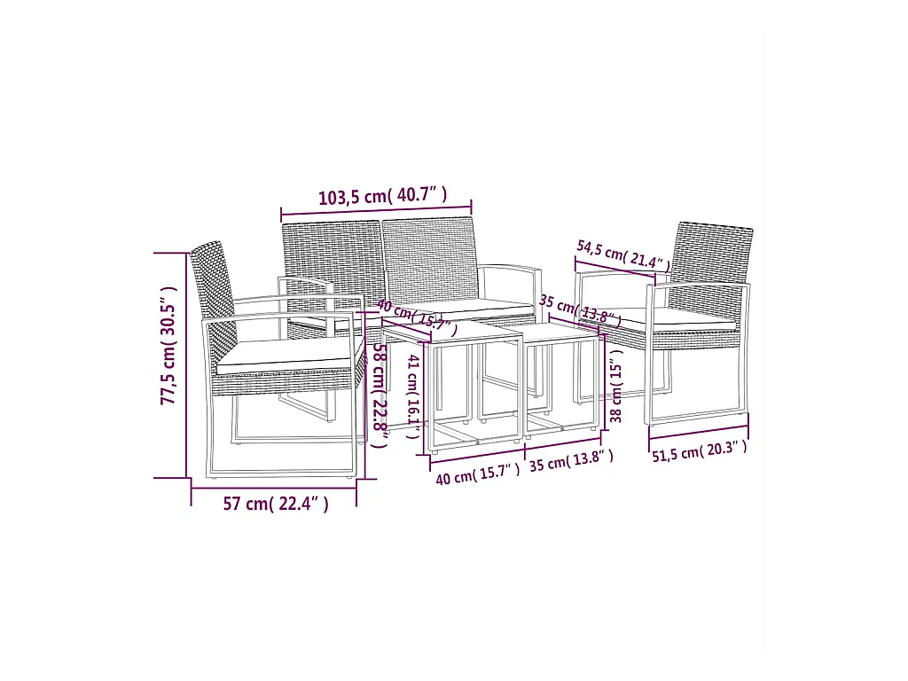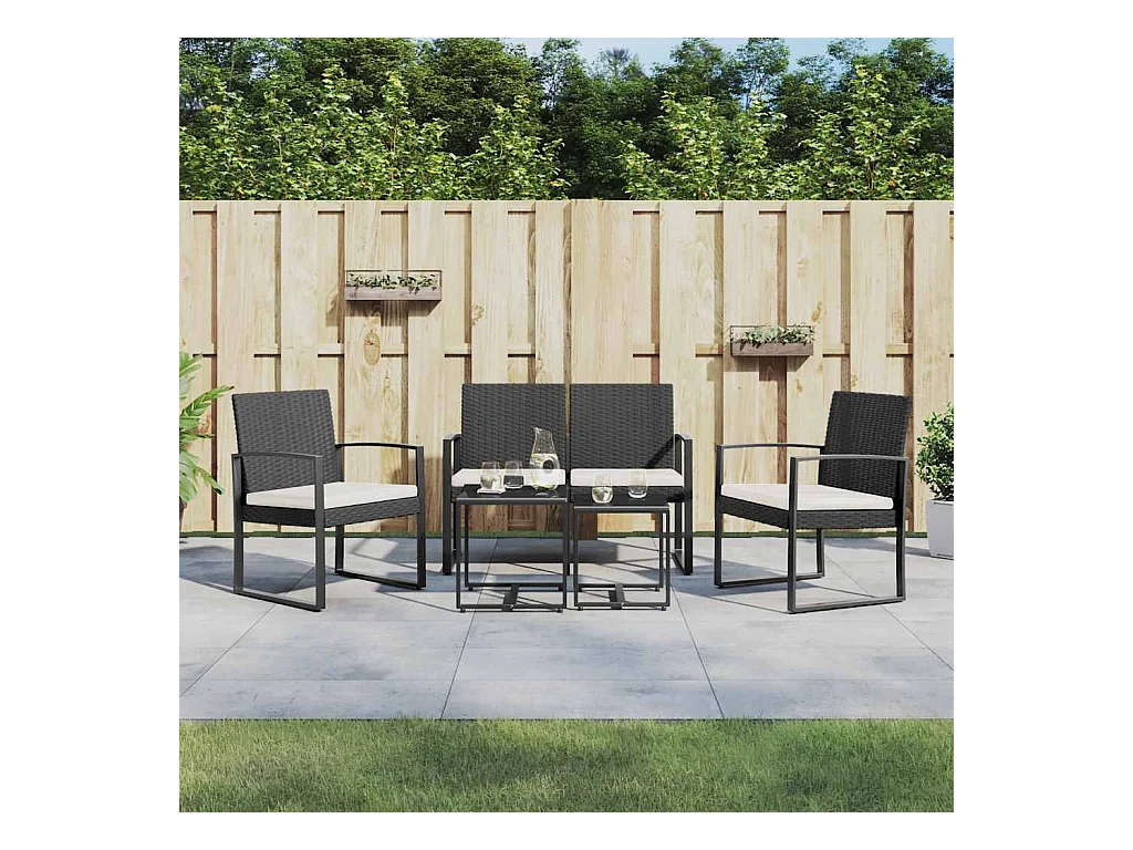 Ensemble à manger de jardin avec coussins 5 pcs noir rotin PP