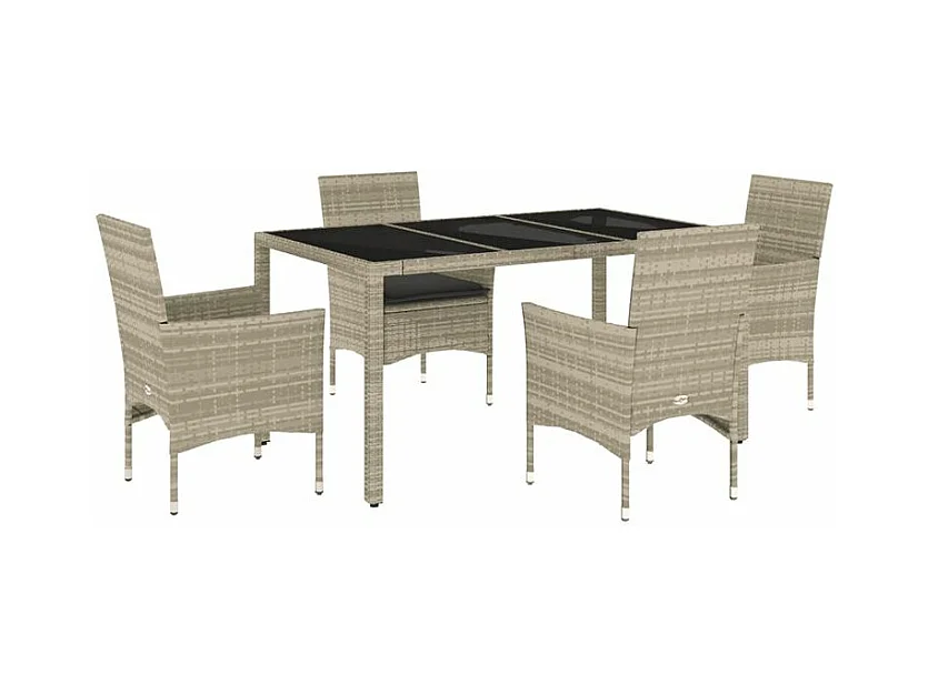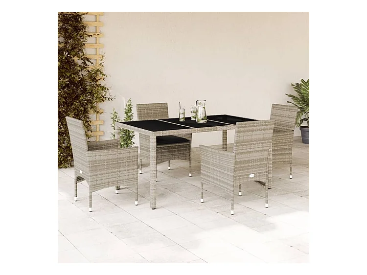 Ensemble à manger de jardin avec coussins 5 pcs rotin et verre