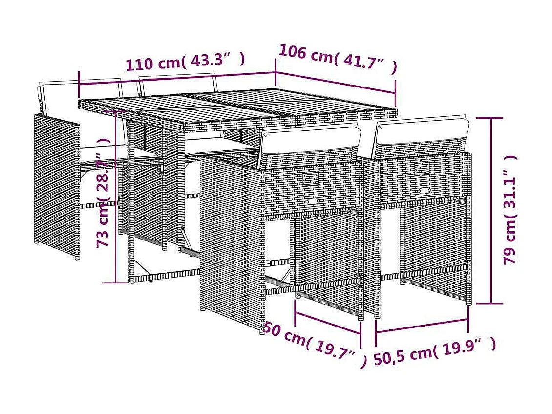 Ensemble à manger de jardin avec coussins 5 pièces Beige poly rotin