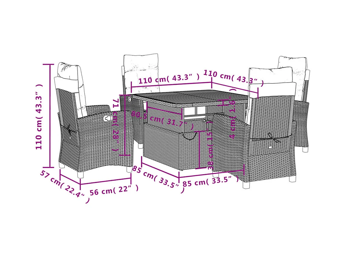 Ensemble à manger de jardin avec coussins 5pcs Beige poly rotin