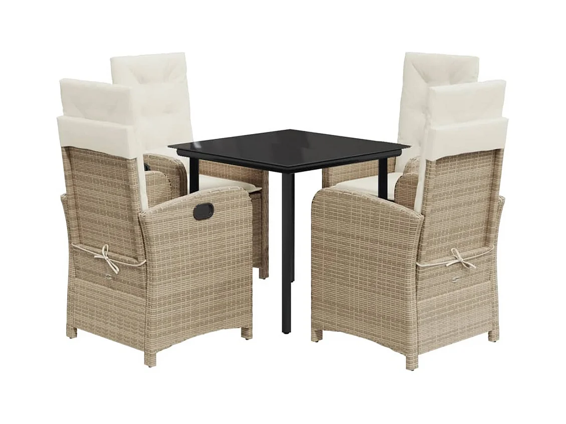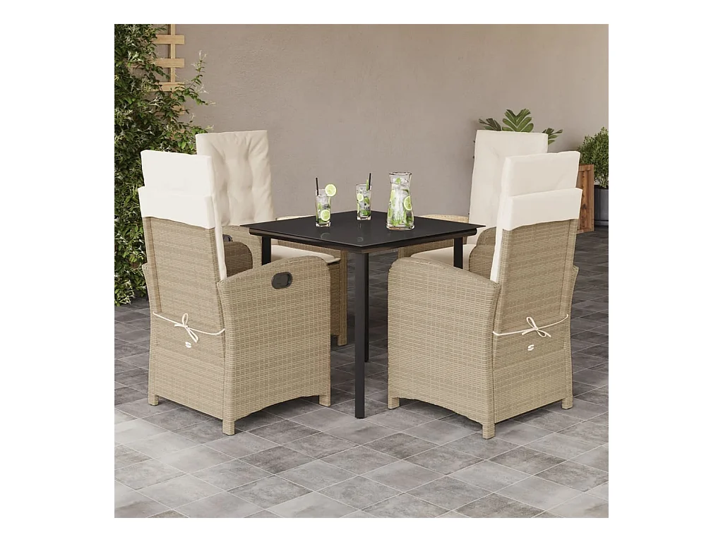 Ensemble à manger de jardin avec coussins 5pcs Beige poly rotin