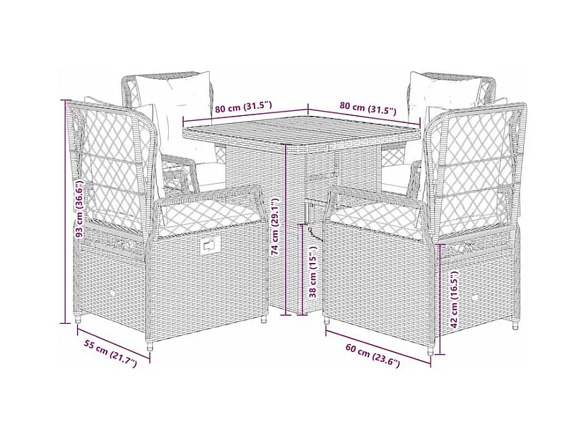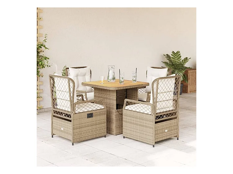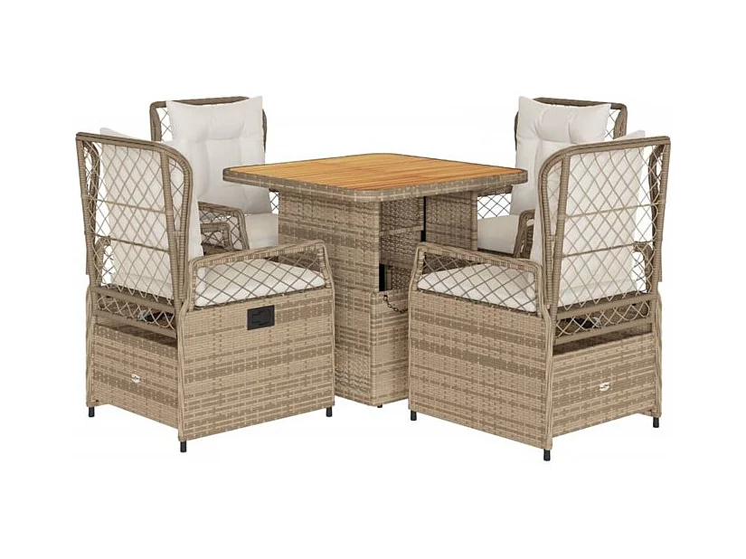 Ensemble à manger de jardin avec coussins 5pcs Beige poly rotin