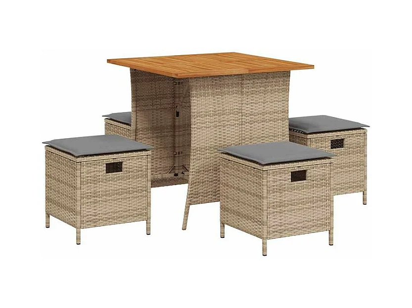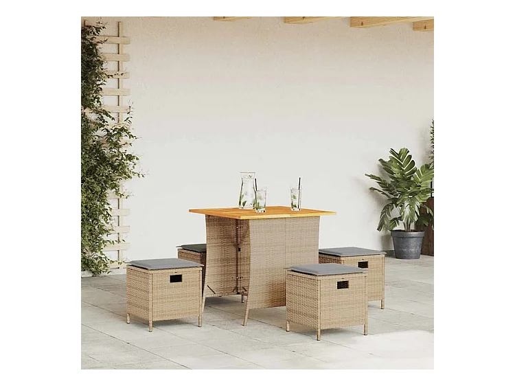 Ensemble à manger de jardin avec coussins 5pcs Beige poly rotin