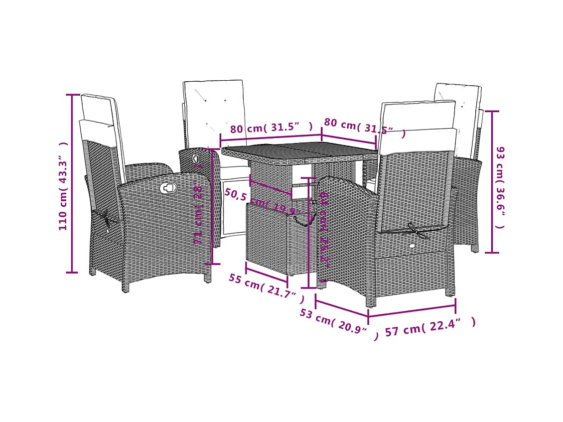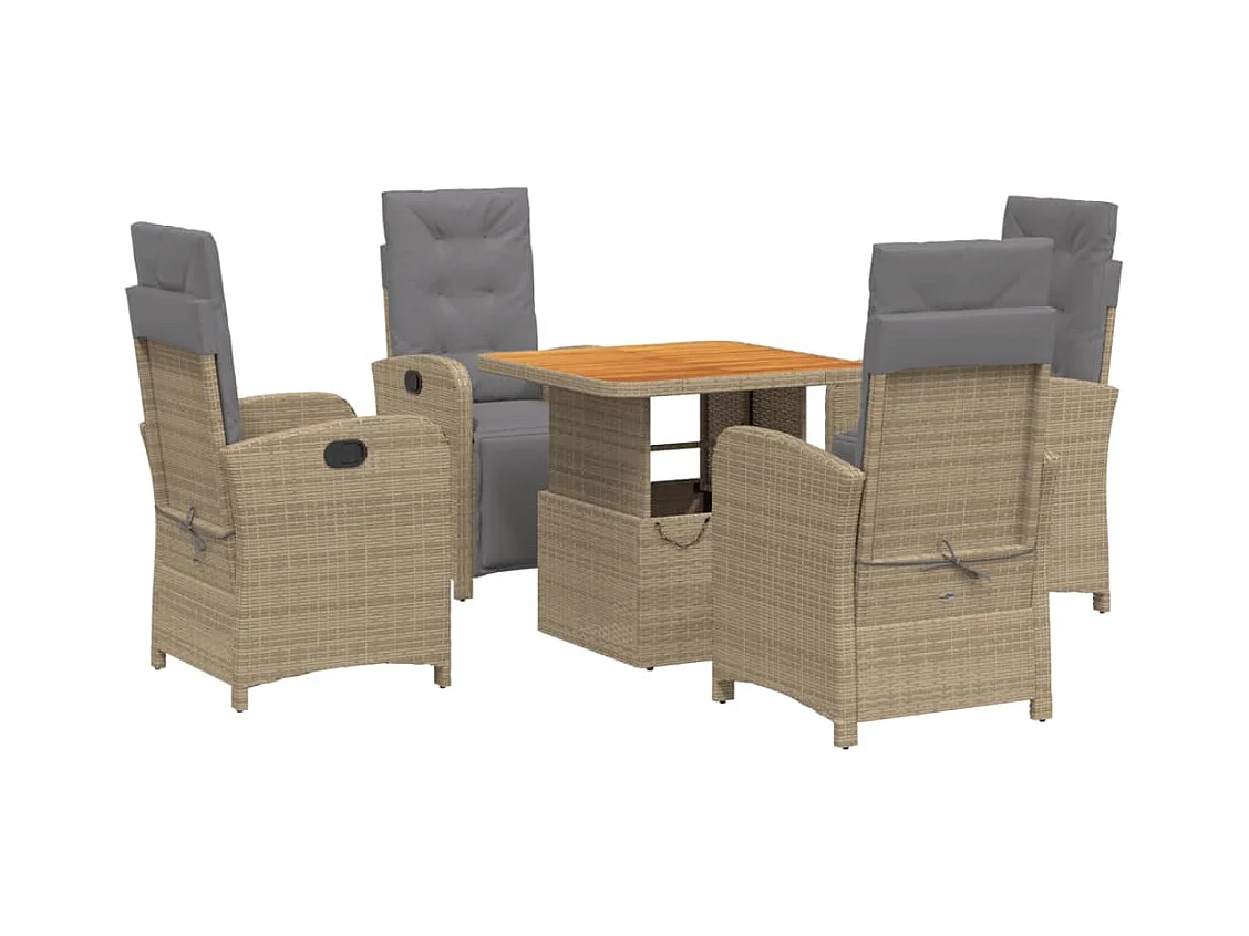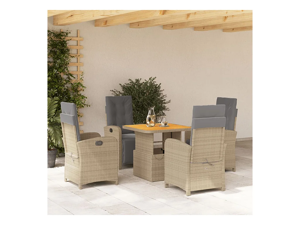 Ensemble à manger de jardin avec coussins 5pcs Beige poly rotin