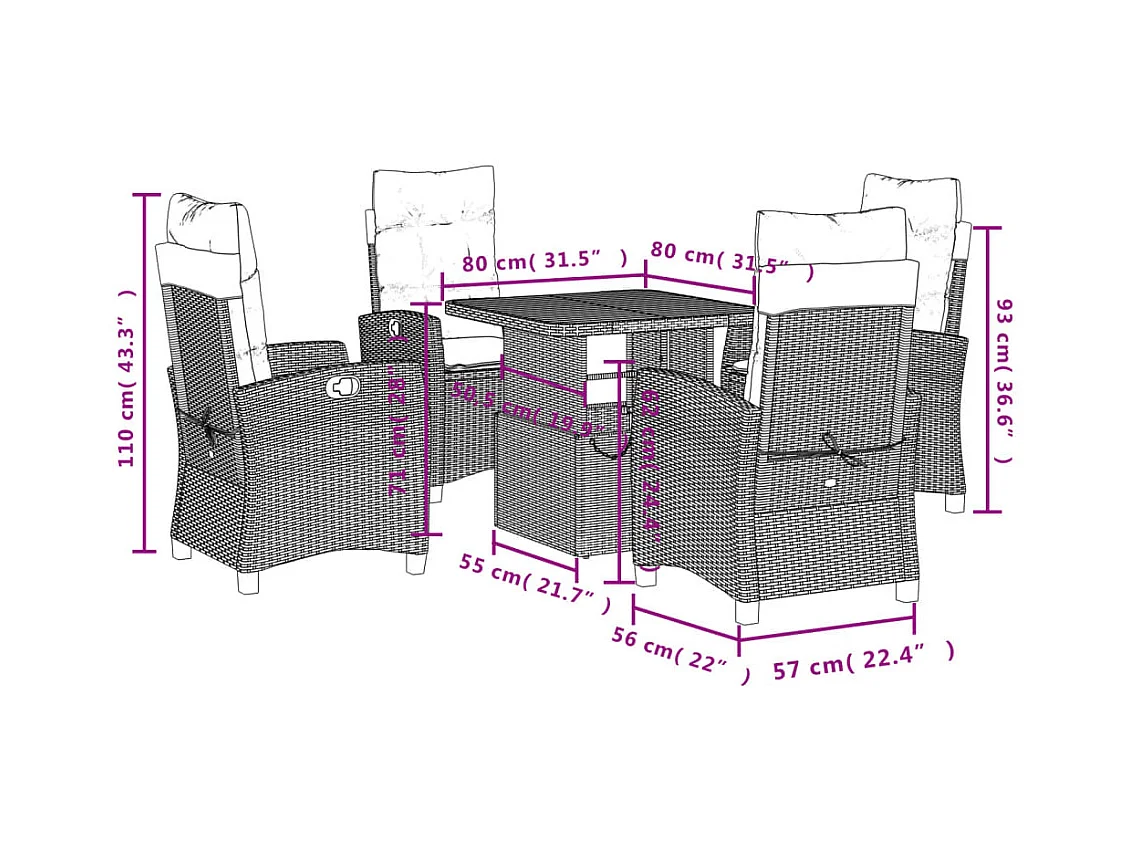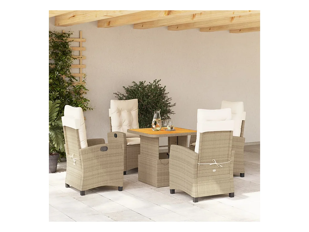 Ensemble à manger de jardin avec coussins 5pcs Beige poly rotin