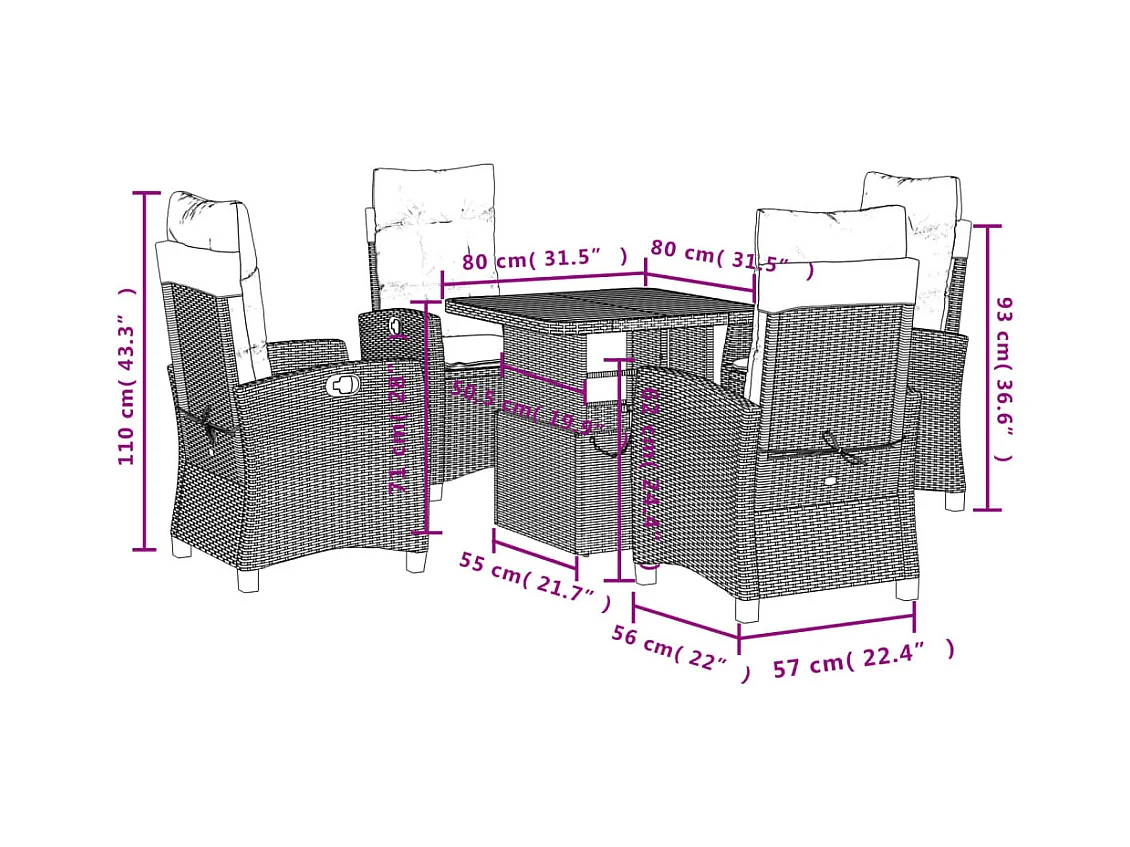 Ensemble à manger de jardin avec coussins 5pcs Beige poly rotin