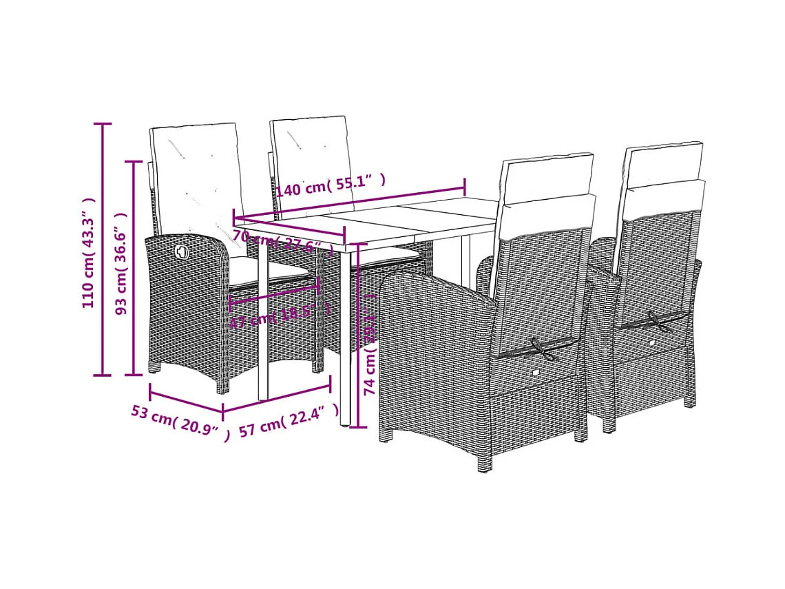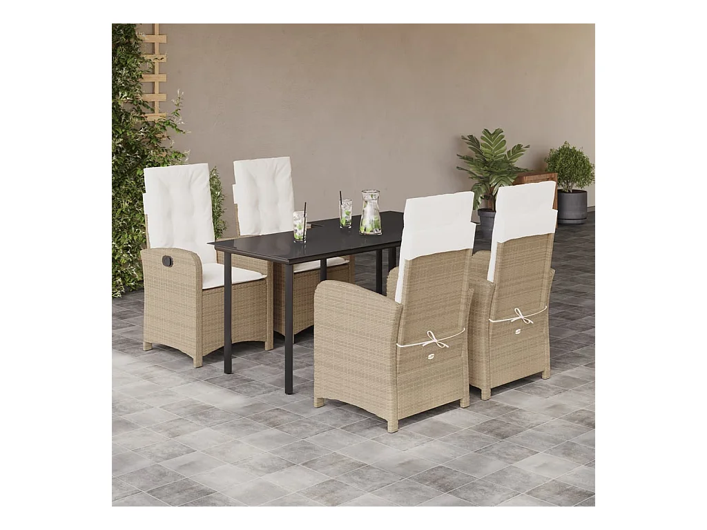 Ensemble à manger de jardin avec coussins 5pcs Beige poly rotin