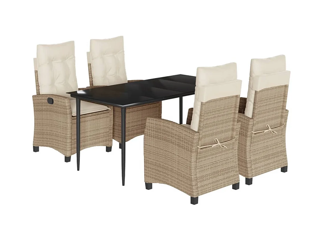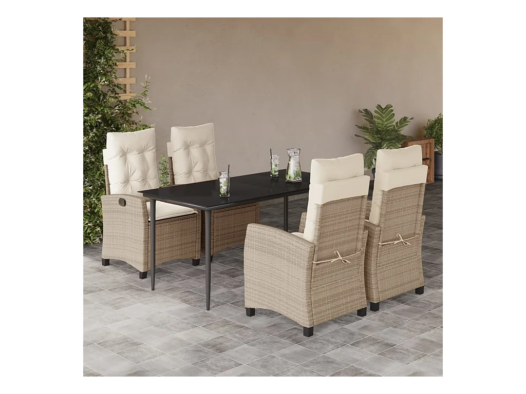Ensemble à manger de jardin avec coussins 5pcs Beige poly rotin