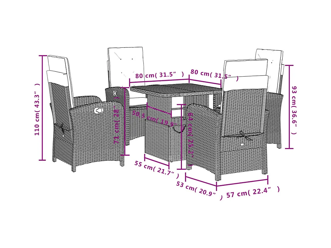 Ensemble à manger de jardin avec coussins 5pcs Beige poly rotin