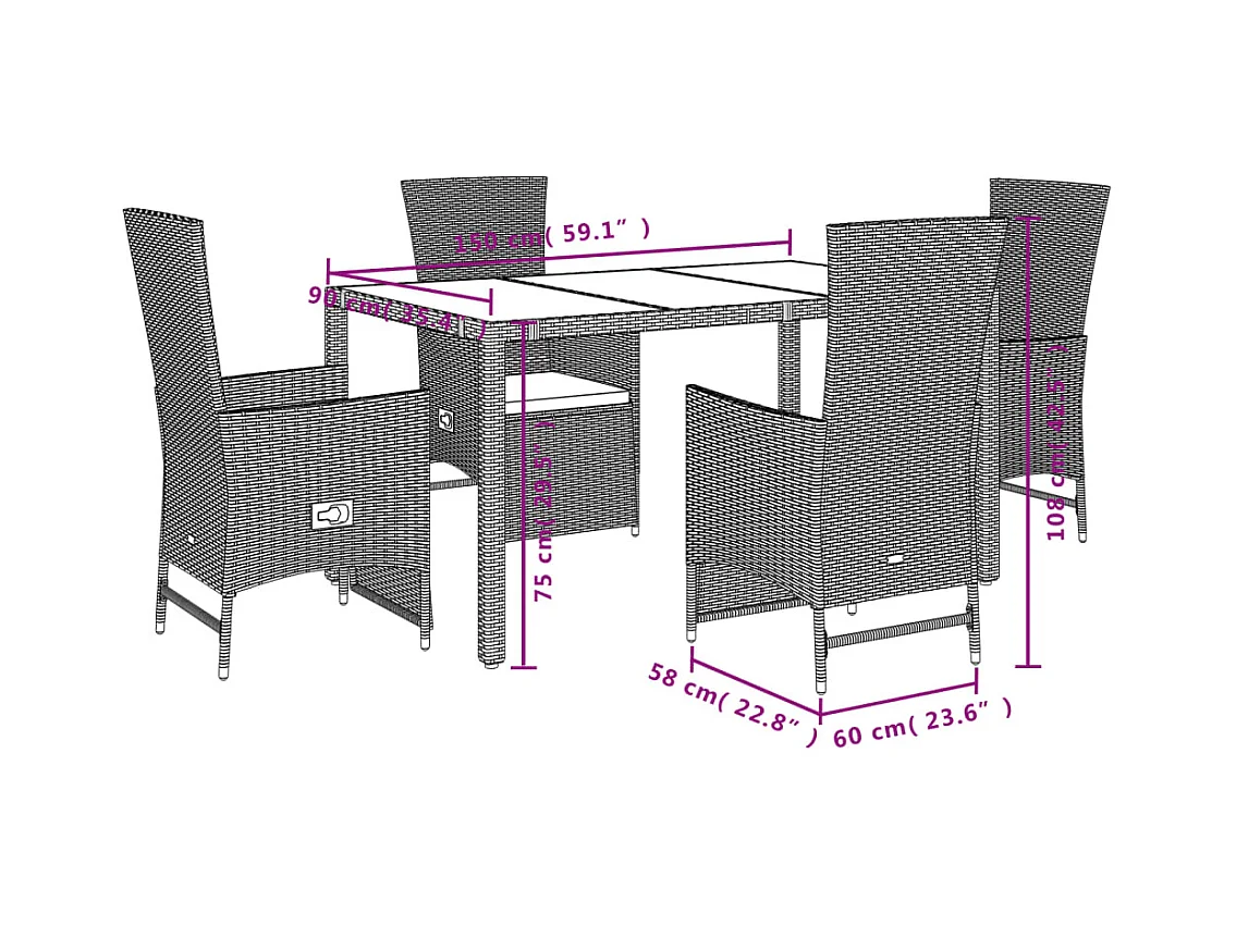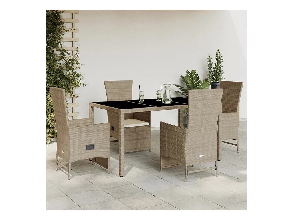 Ensemble à manger de jardin avec coussins 5pcs Beige poly rotin