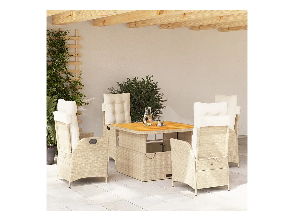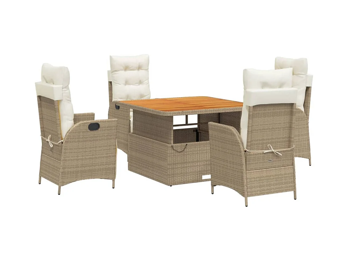 Ensemble à manger de jardin avec coussins 5pcs Beige poly rotin