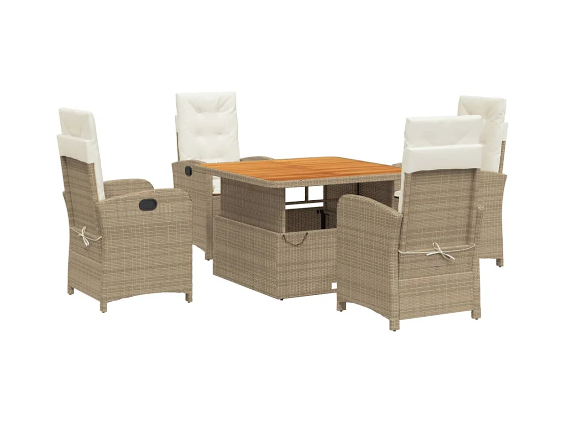 Ensemble à manger de jardin avec coussins 5pcs Beige poly rotin