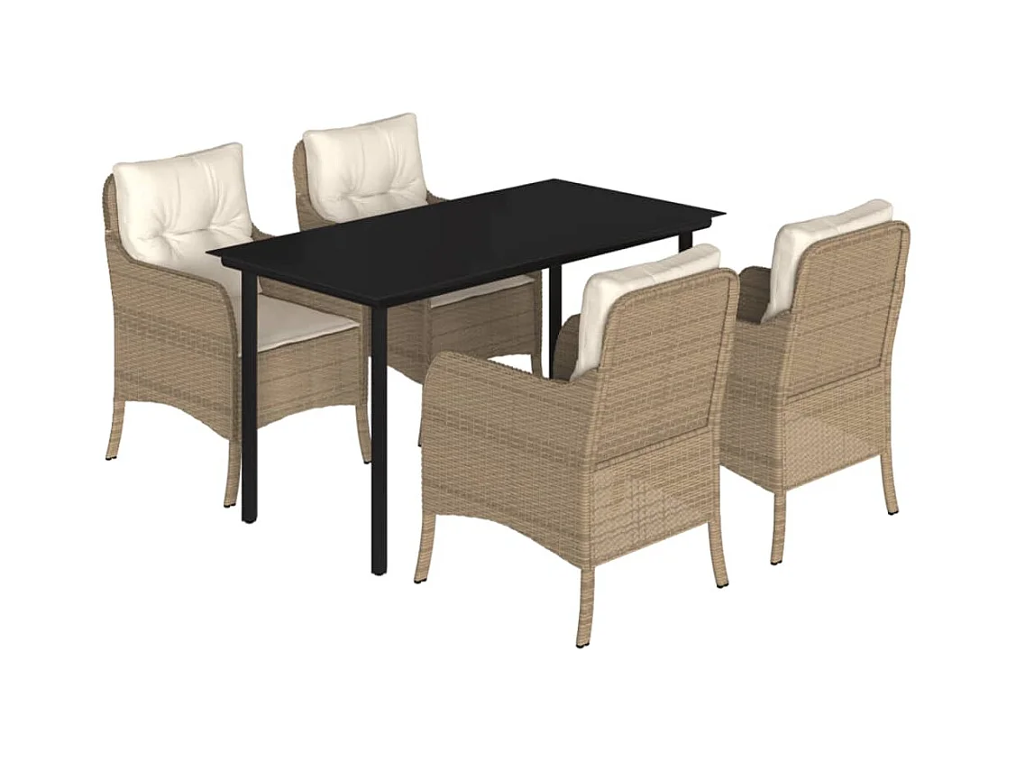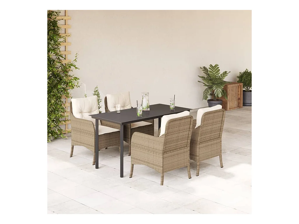 Ensemble à manger de jardin avec coussins 5pcs Beige poly rotin