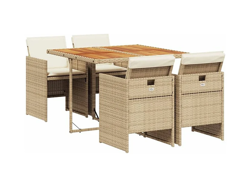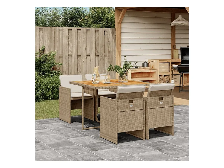 Ensemble à manger de jardin avec coussins 5pcs Beige poly rotin