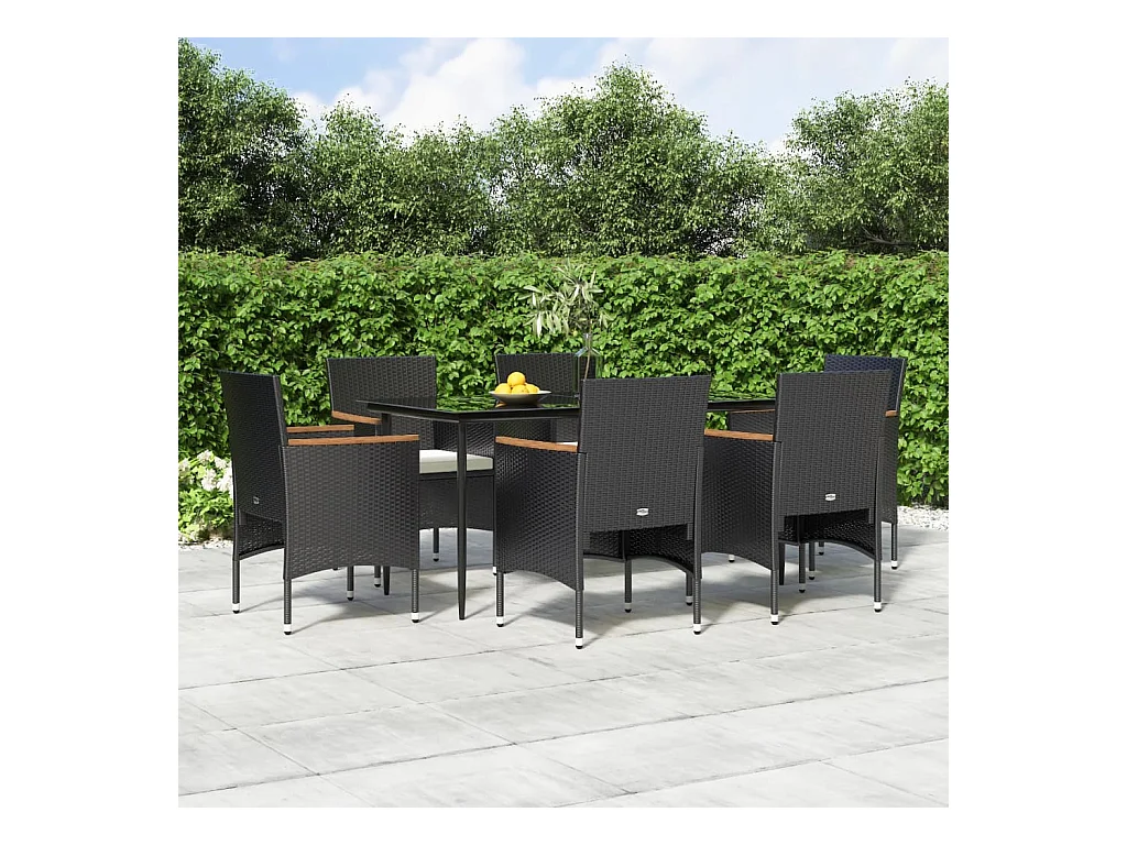 Ensemble à manger de jardin avec coussins 7 pcs Noir