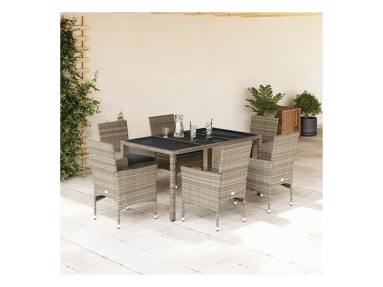 Ensemble à manger de jardin avec coussins 7 pcs rotin et verre