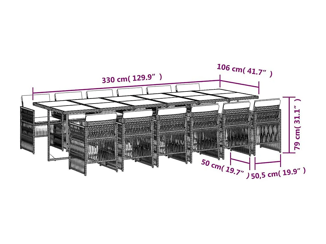 Ensemble à manger de jardin coussins 13 pcs mélange beige rotin