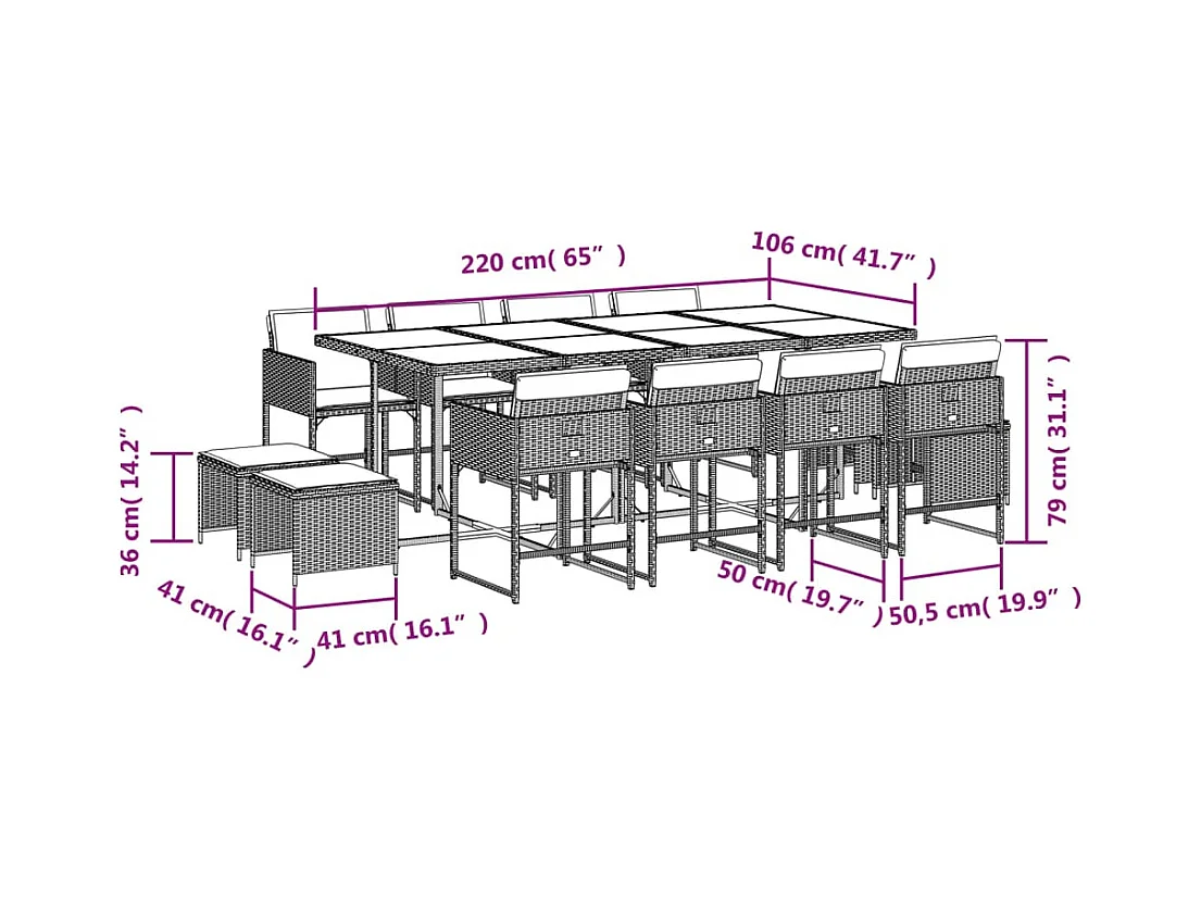 Ensemble à manger de jardin coussins 13 pièces gris résine tressée
