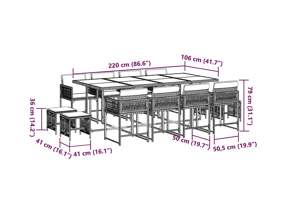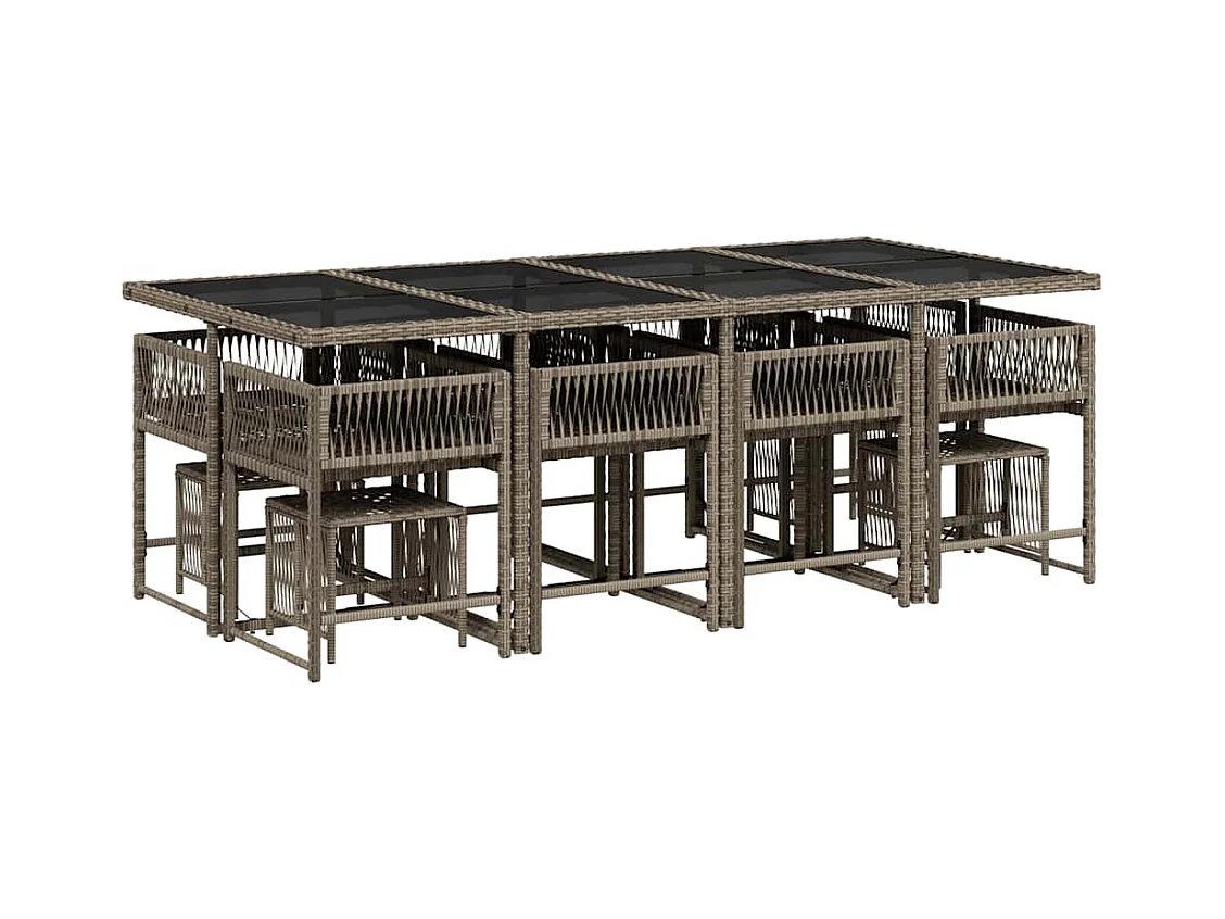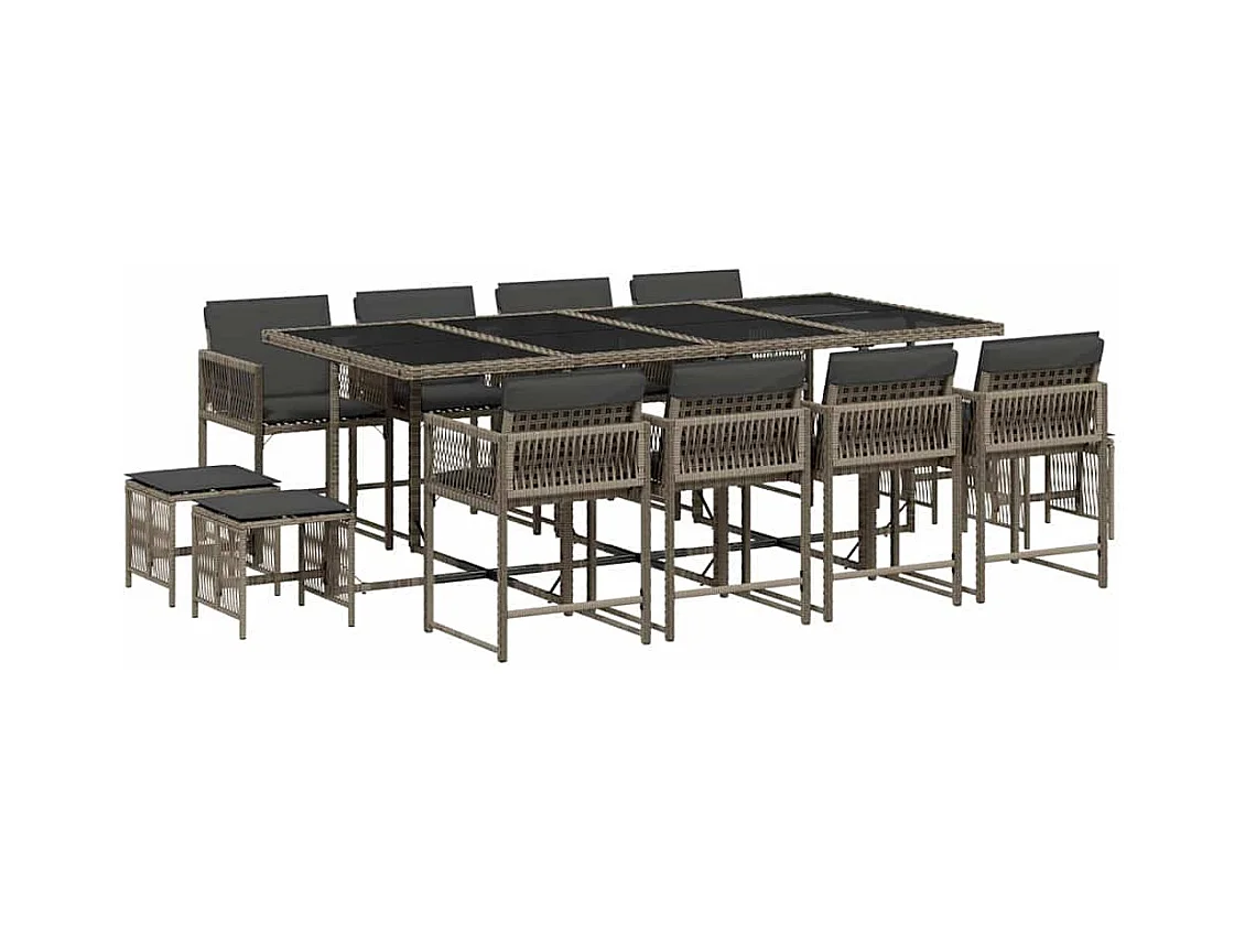 Ensemble à manger de jardin coussins 13 pièces gris résine tressée
