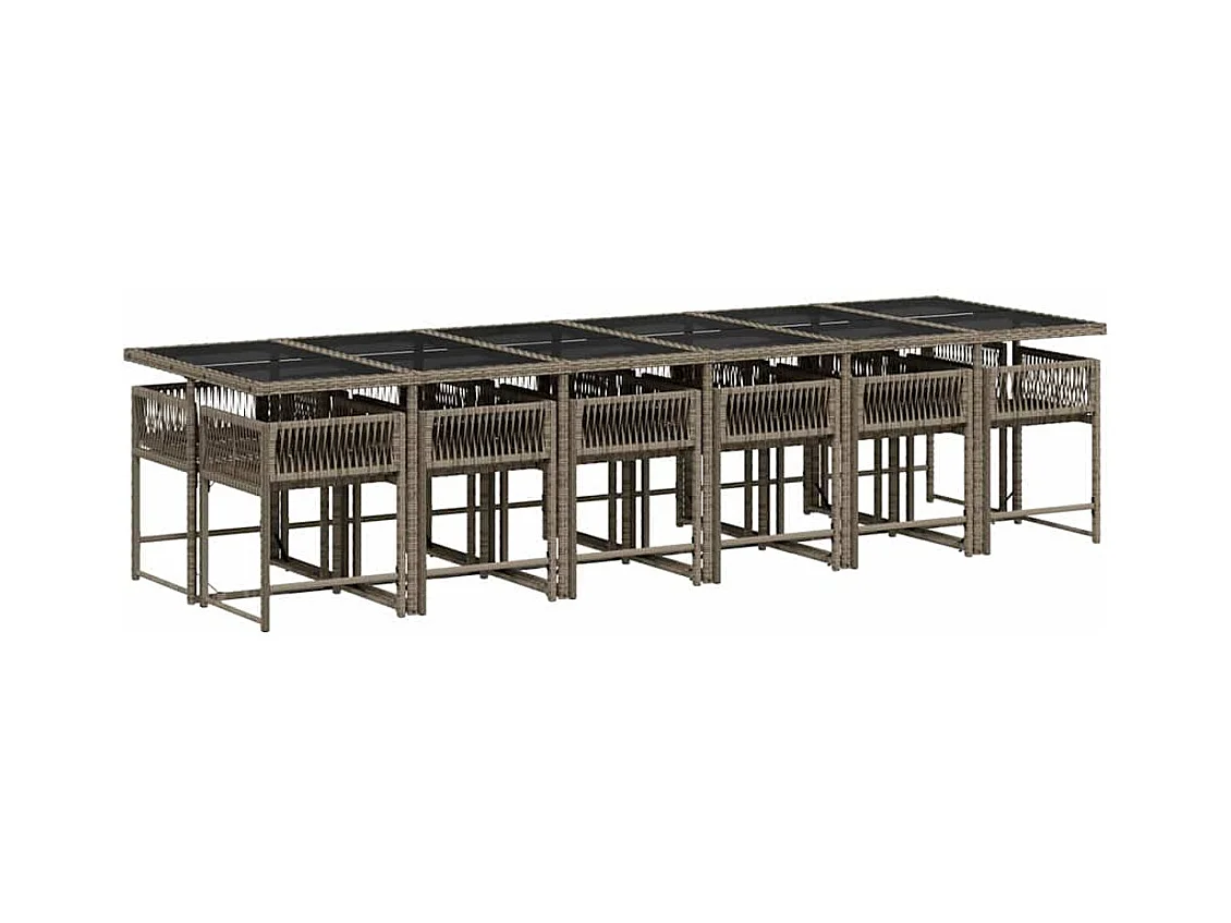 Ensemble à manger de jardin coussins 13 pièces gris résine tressée
