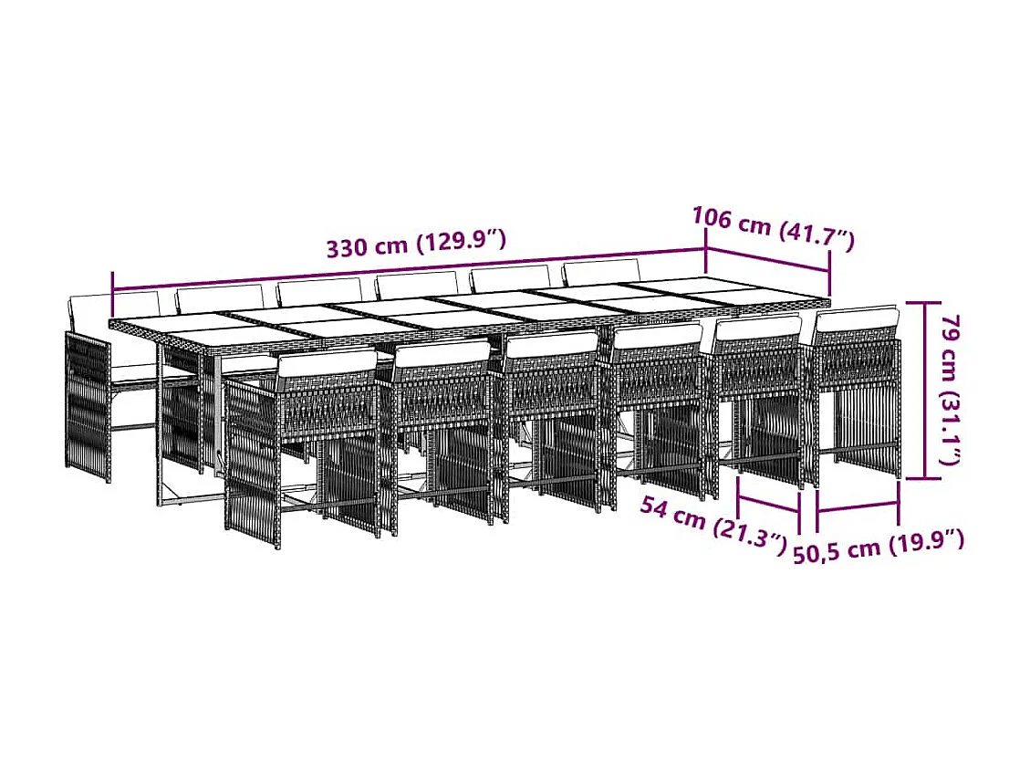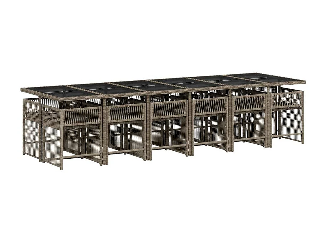 Ensemble à manger de jardin coussins 13 pièces gris résine tressée