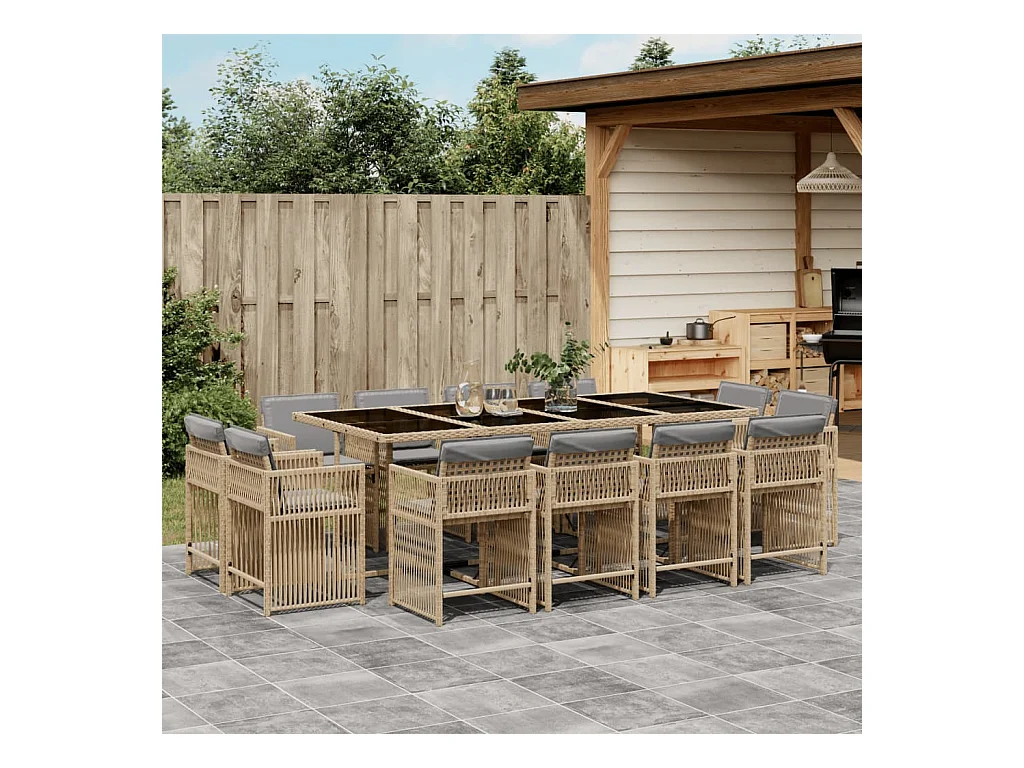 Ensemble à manger de jardin coussins 13 pièces mélange beige rotin