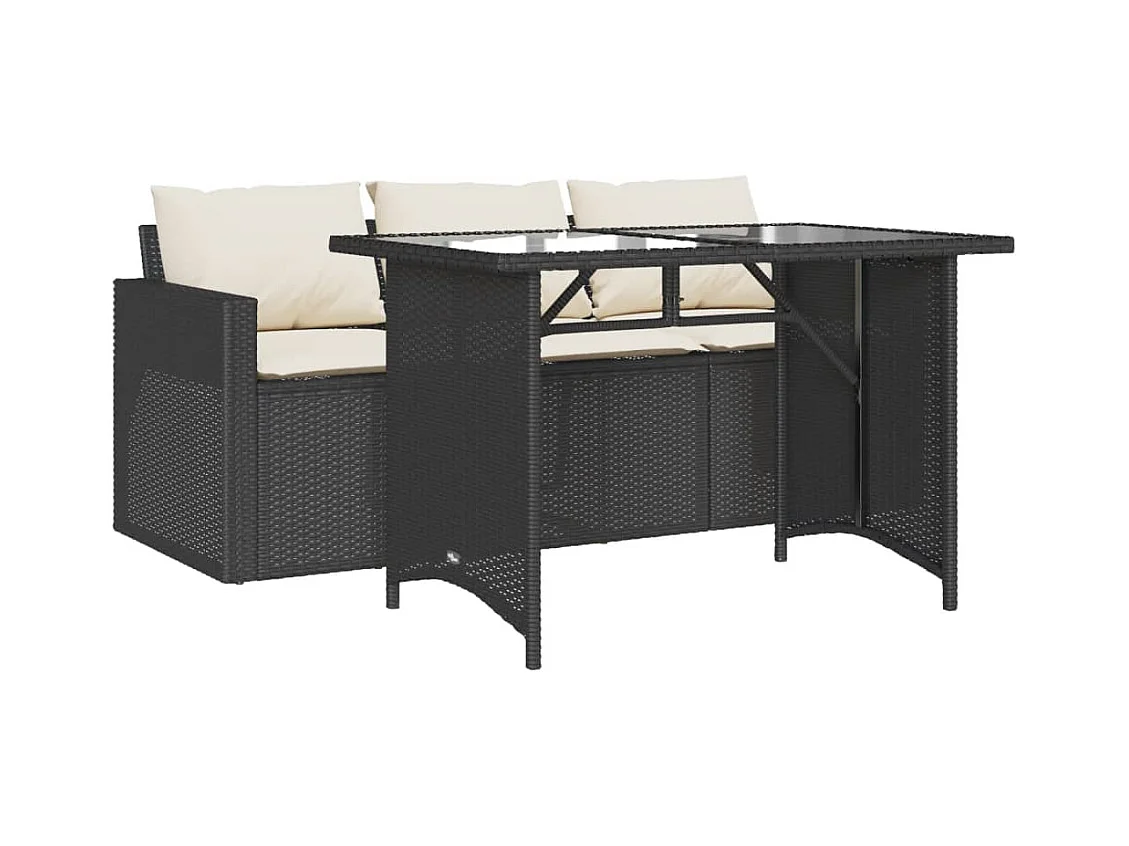 Ensemble à manger de jardin coussins 2pcs noir résine tressée FR92431
