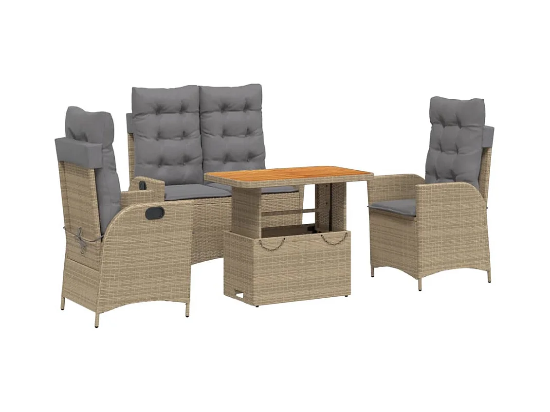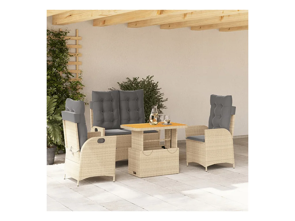 Ensemble à manger de jardin coussins 4 pcs beige résine tressée