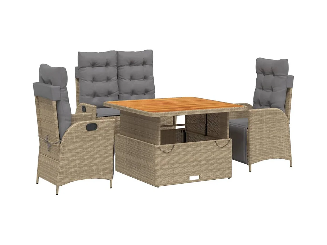 Ensemble à manger de jardin coussins 4 pcs beige résine tressée