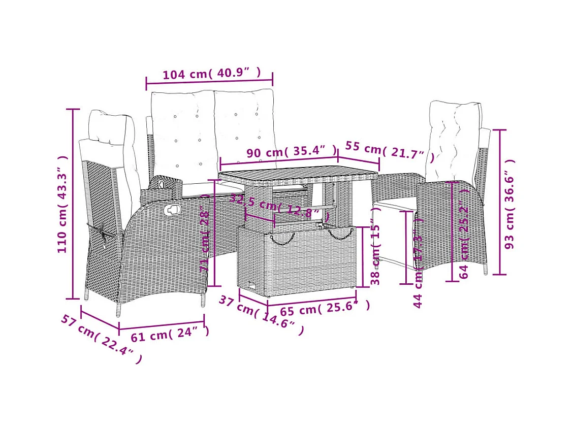 Ensemble à manger de jardin coussins 4 pcs beige résine tressée