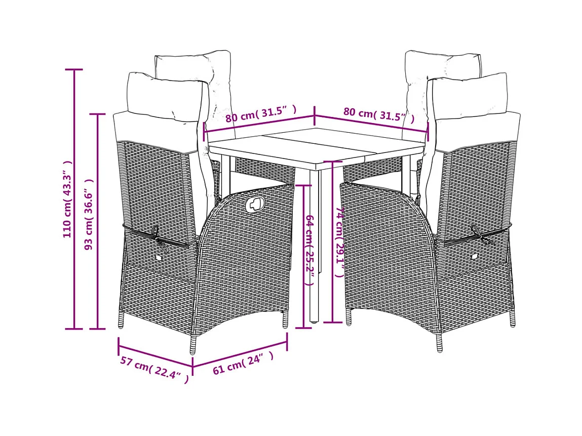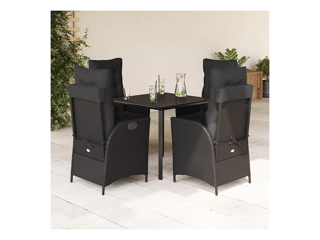 Ensemble à manger de jardin coussins 5pcs Noir Résine tressée