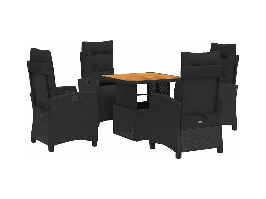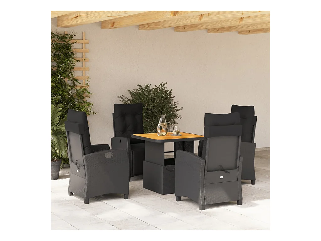 Ensemble à manger de jardin coussins 5pcs Noir Résine tressée