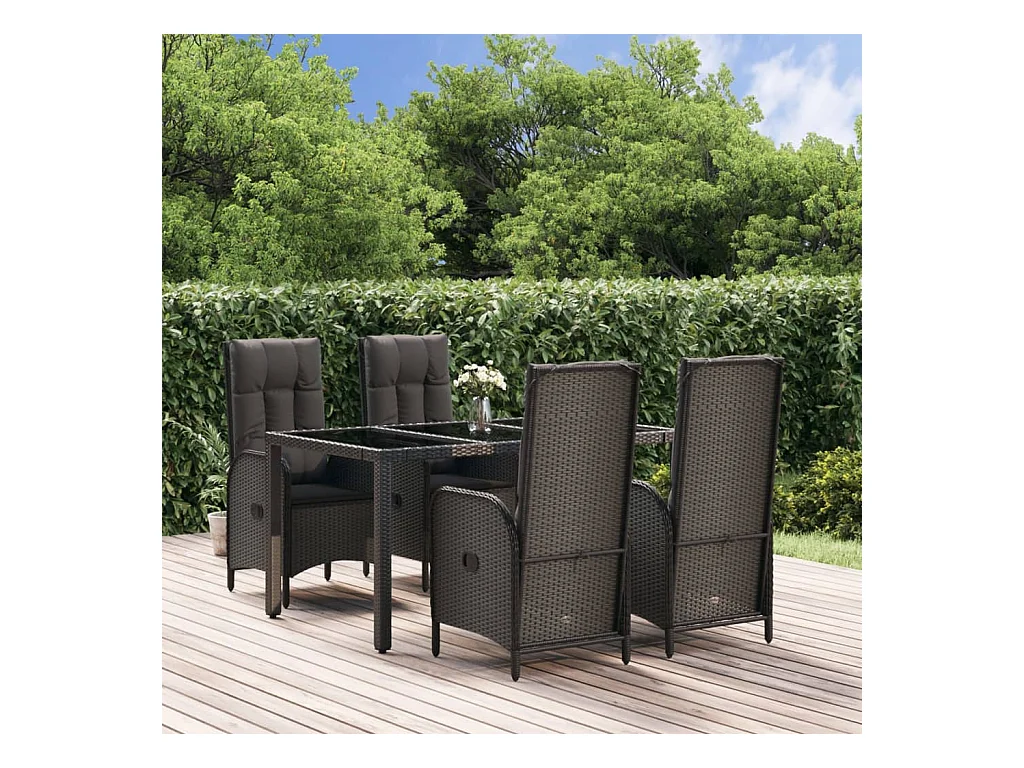 Ensemble à manger de jardin coussins 5pcs Noir Résine tressée