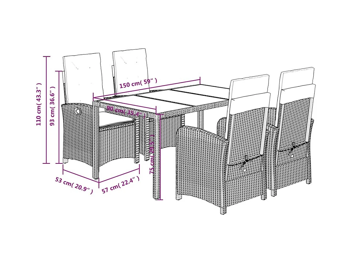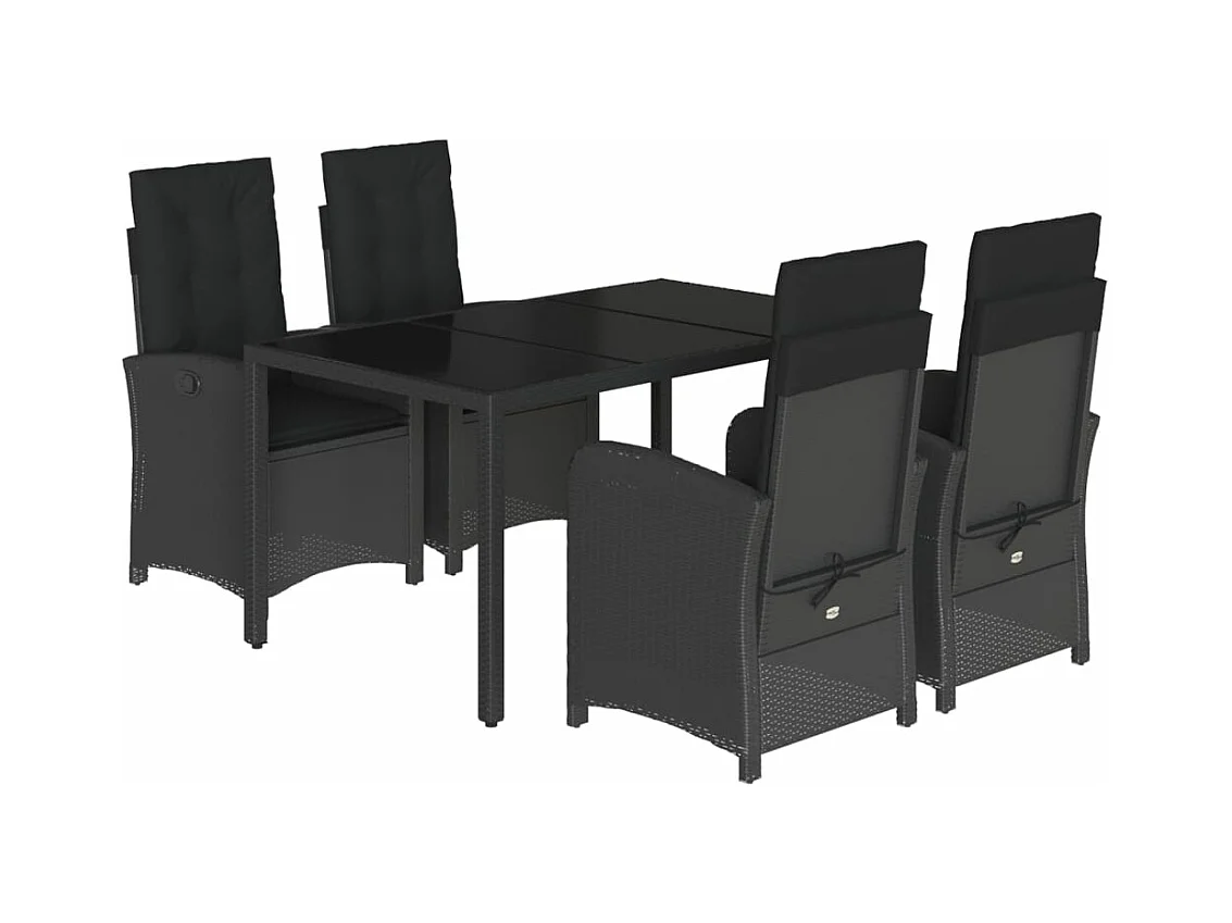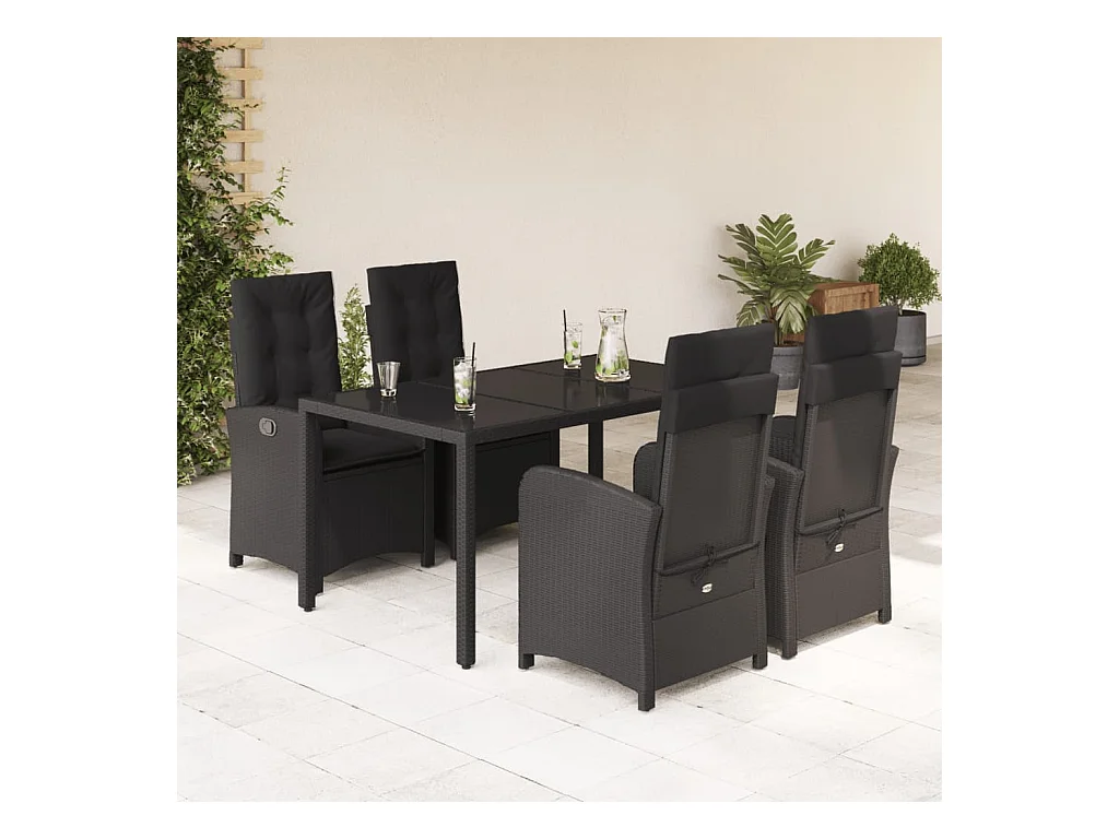 Ensemble à manger de jardin coussins 5pcs Noir Résine tressée