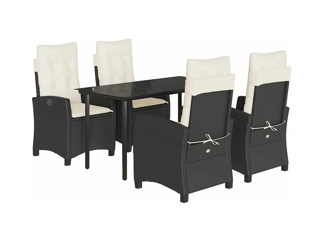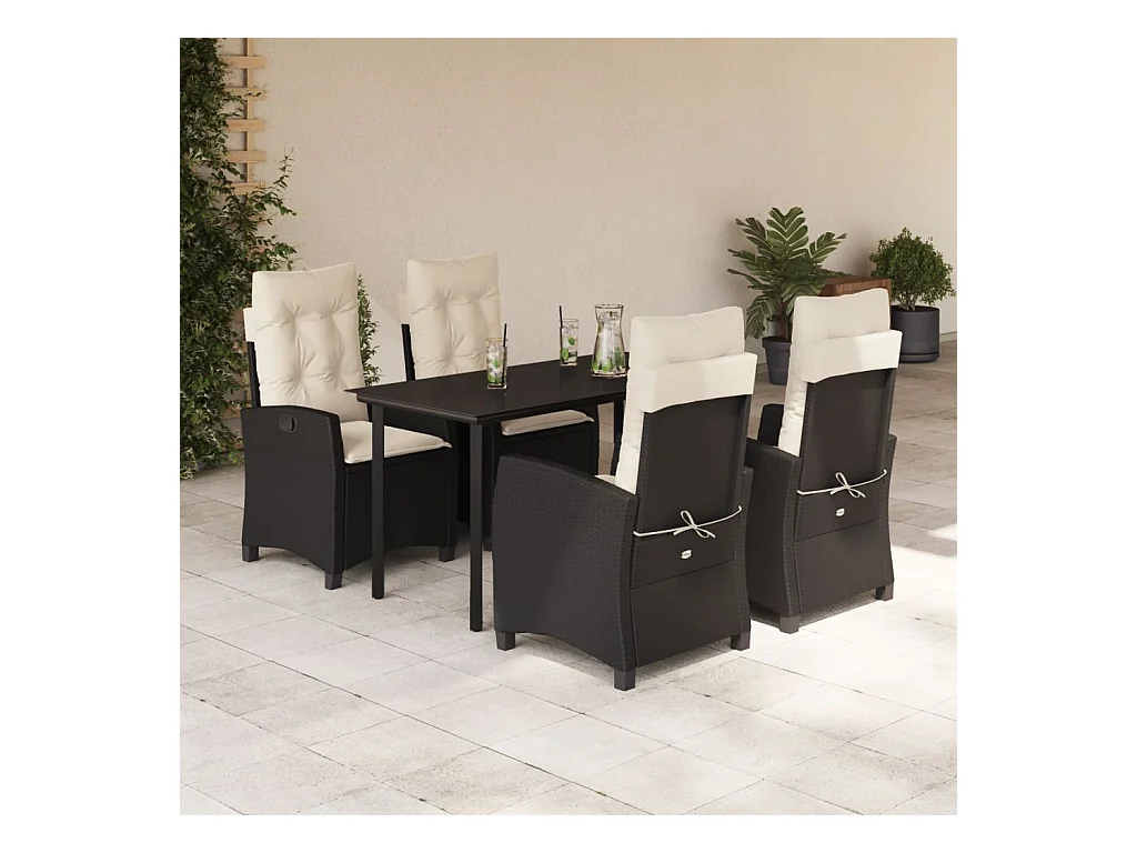Ensemble à manger de jardin coussins 5pcs Noir Résine tressée