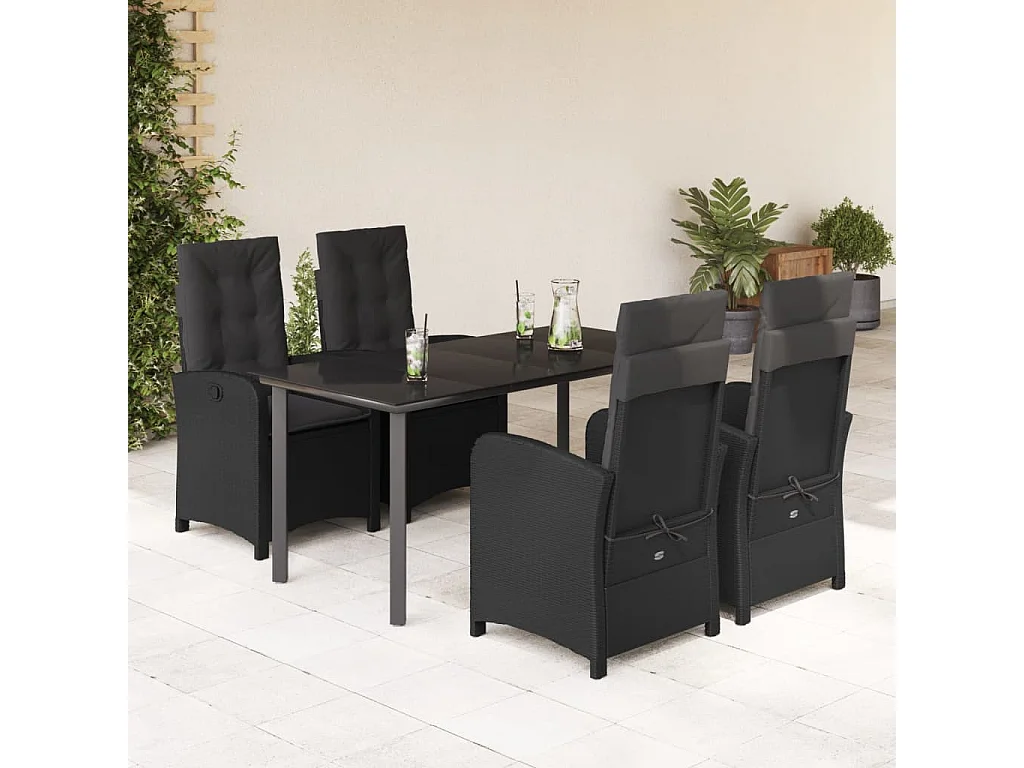 Ensemble à manger de jardin coussins 5pcs Noir Résine tressée