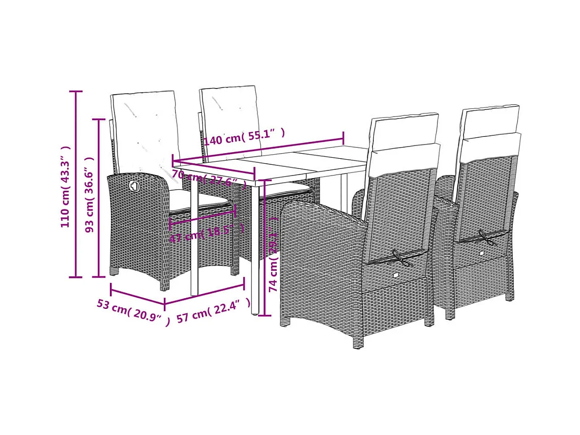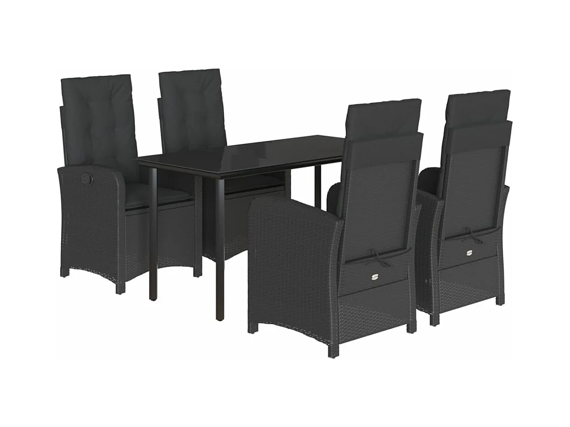 Ensemble à manger de jardin coussins 5pcs Noir Résine tressée