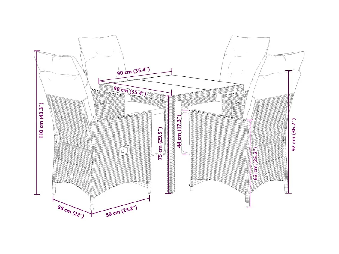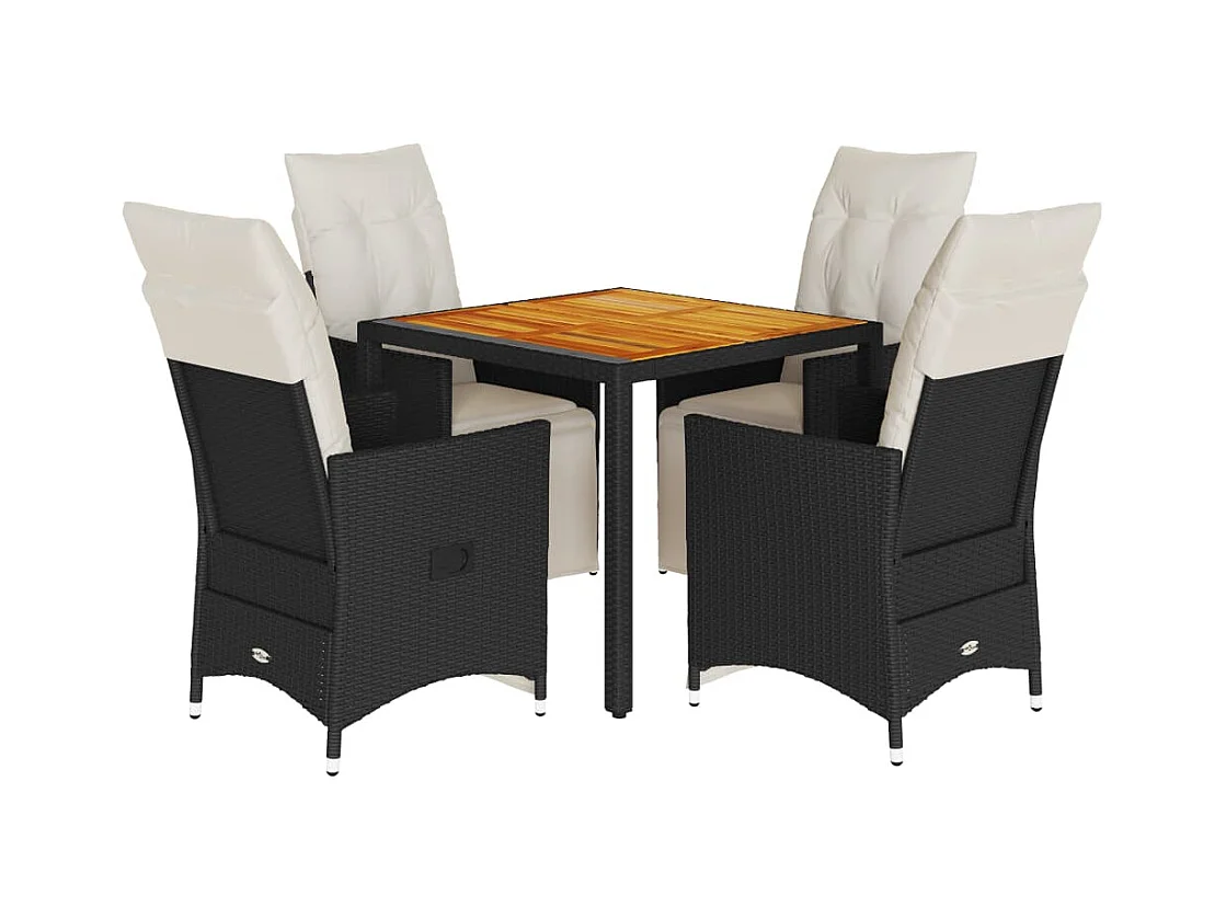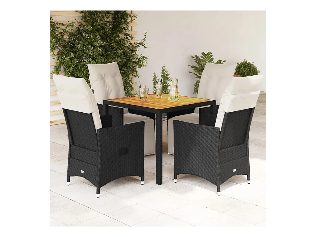Ensemble à manger de jardin coussins 5pcs Noir Résine tressée