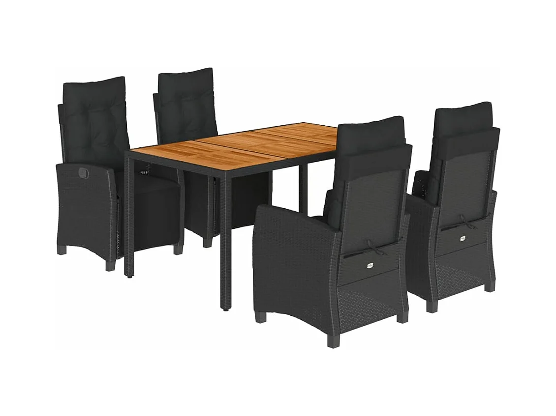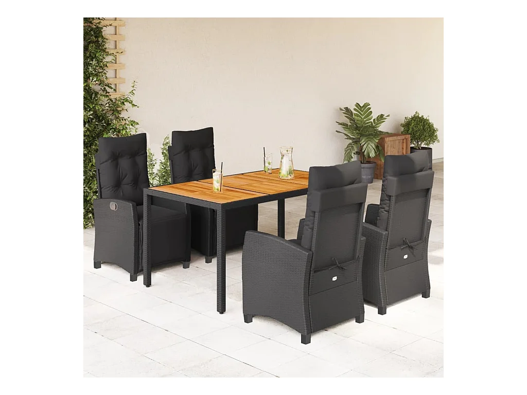 Ensemble à manger de jardin coussins 5pcs Noir Résine tressée